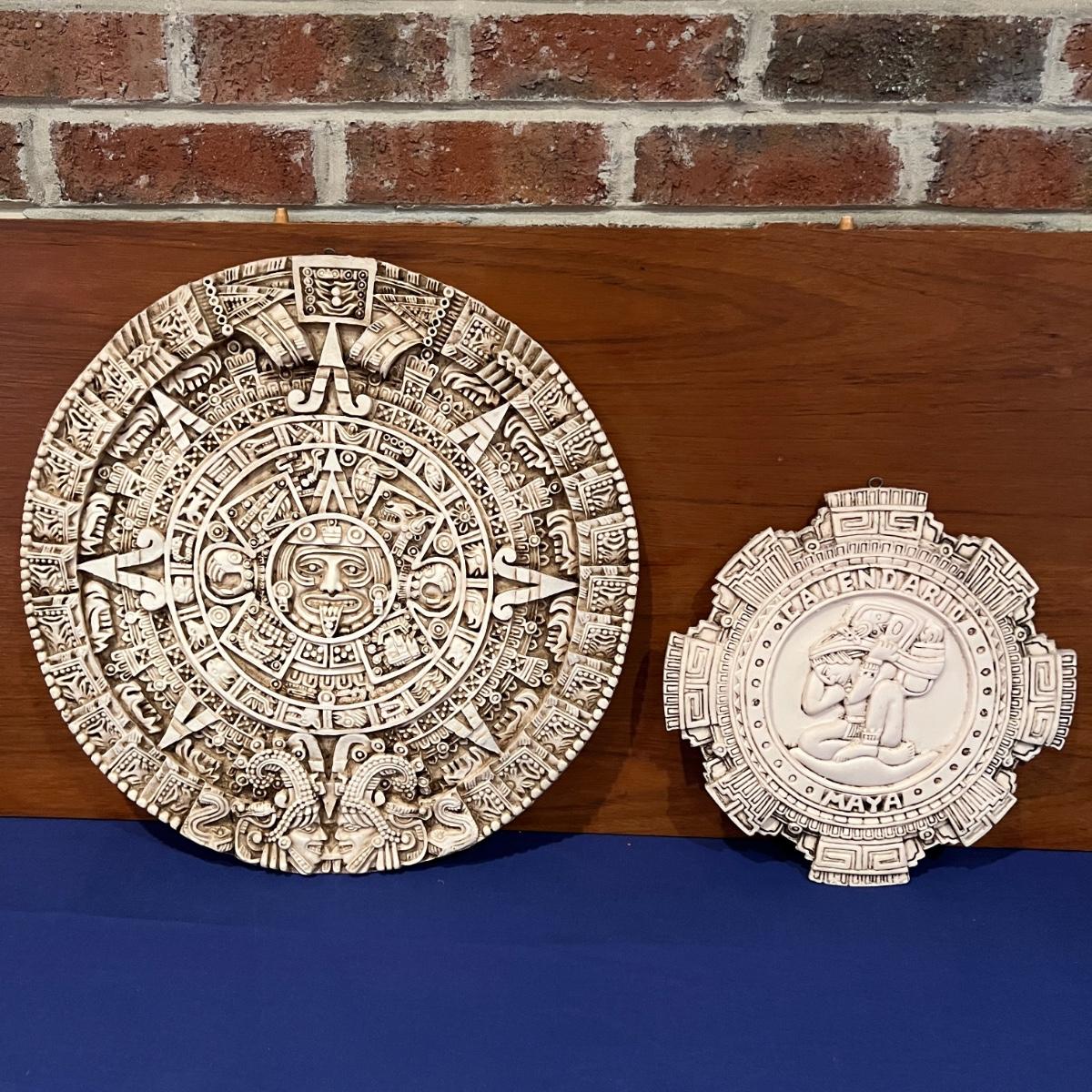 Lot of 2 Heavy Mayan Aztec Ceramic Wall Plaques