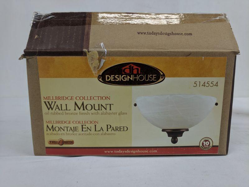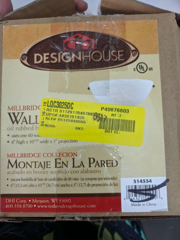 Design House 514554 Millbridge 1-Light Wall Sconce, Alabaster Glass, Oil Rubbed Bronze - New, Opened Box