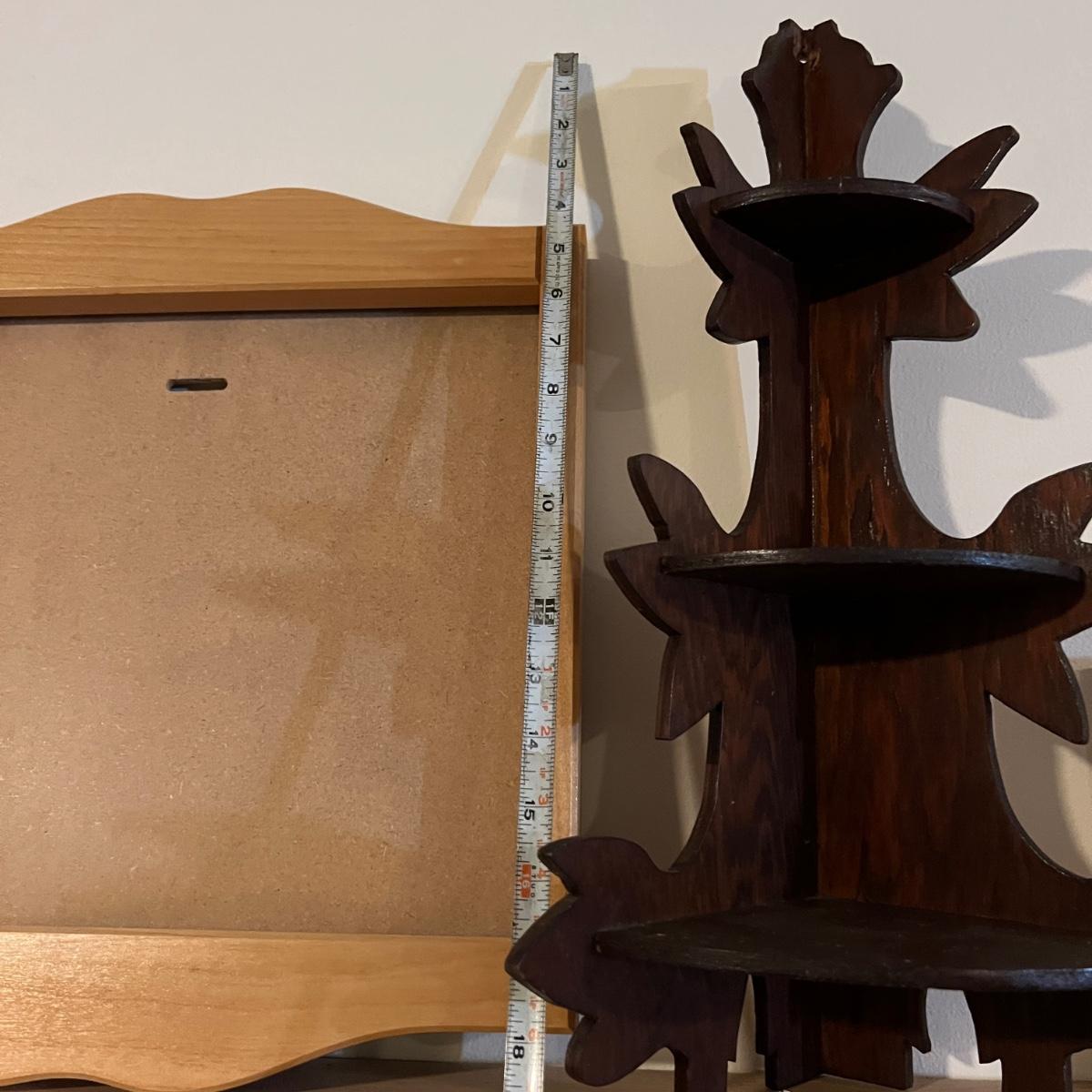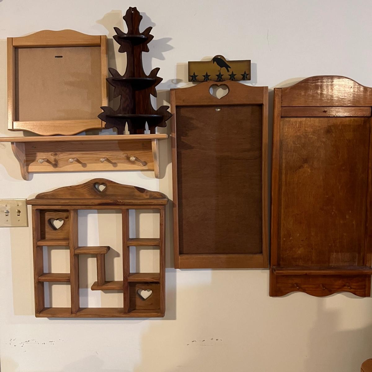 7 Pc. Decorative Wood Lot - Wall Shelves, Calendar Frames, Hooks, Corner Shelf