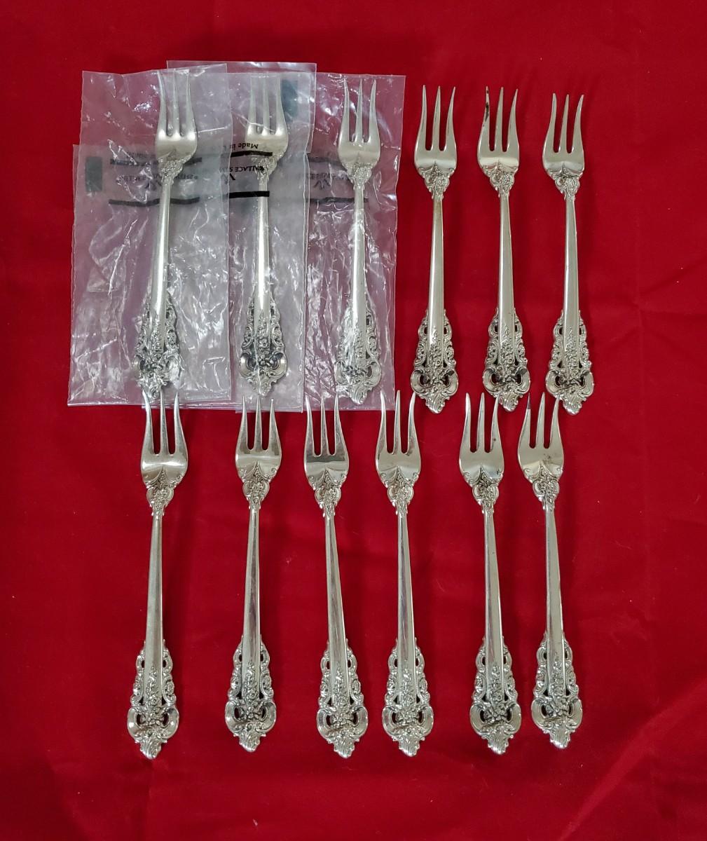 Magnificent set with lots of extras that you don't see in standard sets (177 total pieces). Some pieces are still new in the bags. Some are out of the bag but haven't been used. Most of the standard pieces (forks/knives/spoons) show normal signs of use: