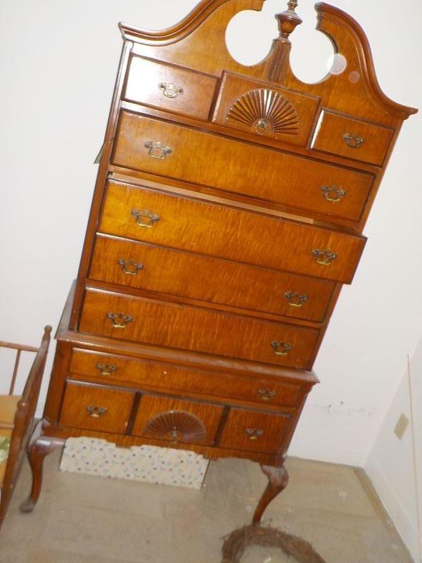 Wallace Nutting Design High Boy Chest/ double fan tiger maple.