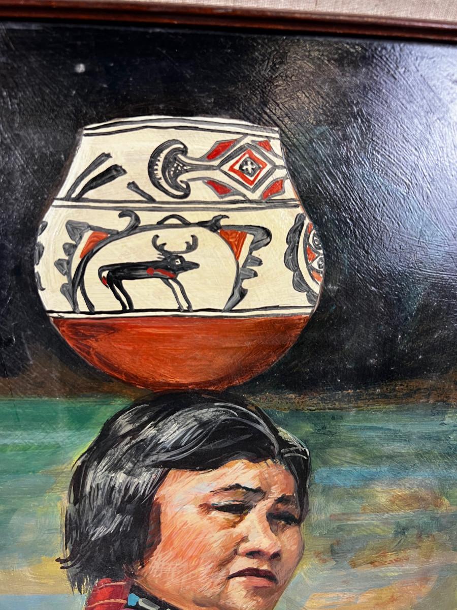 Wallace Parker, Oil on Board, Squash Blossom Women