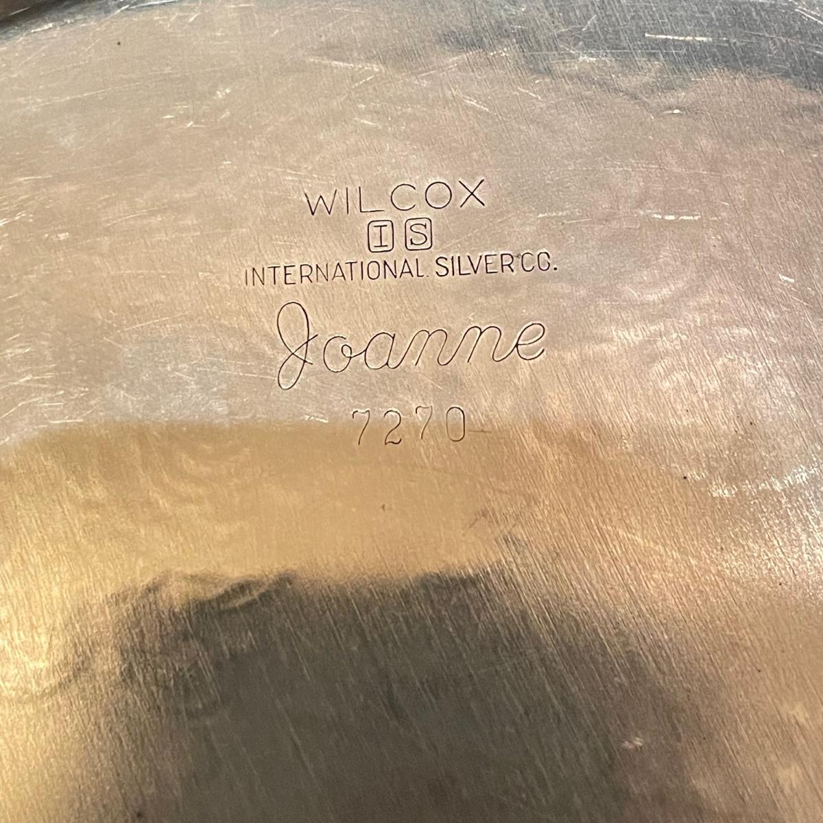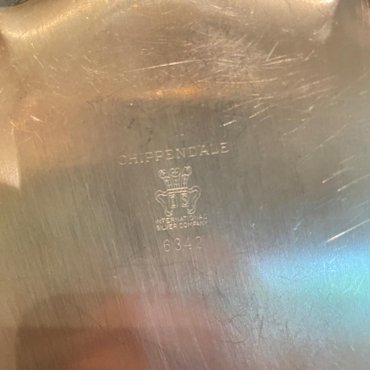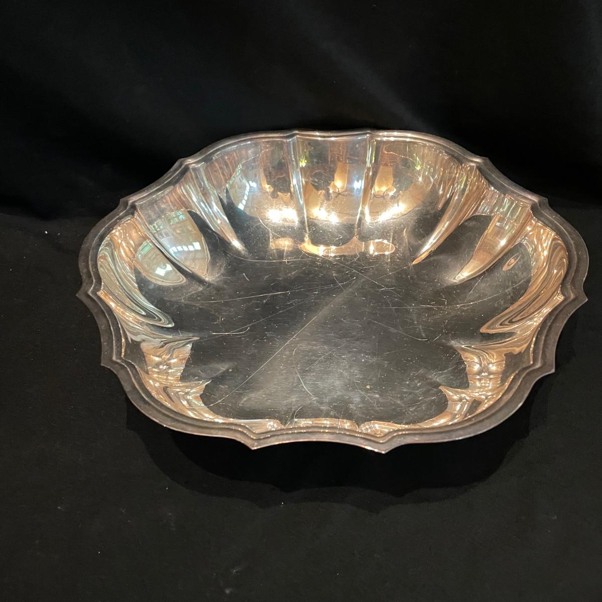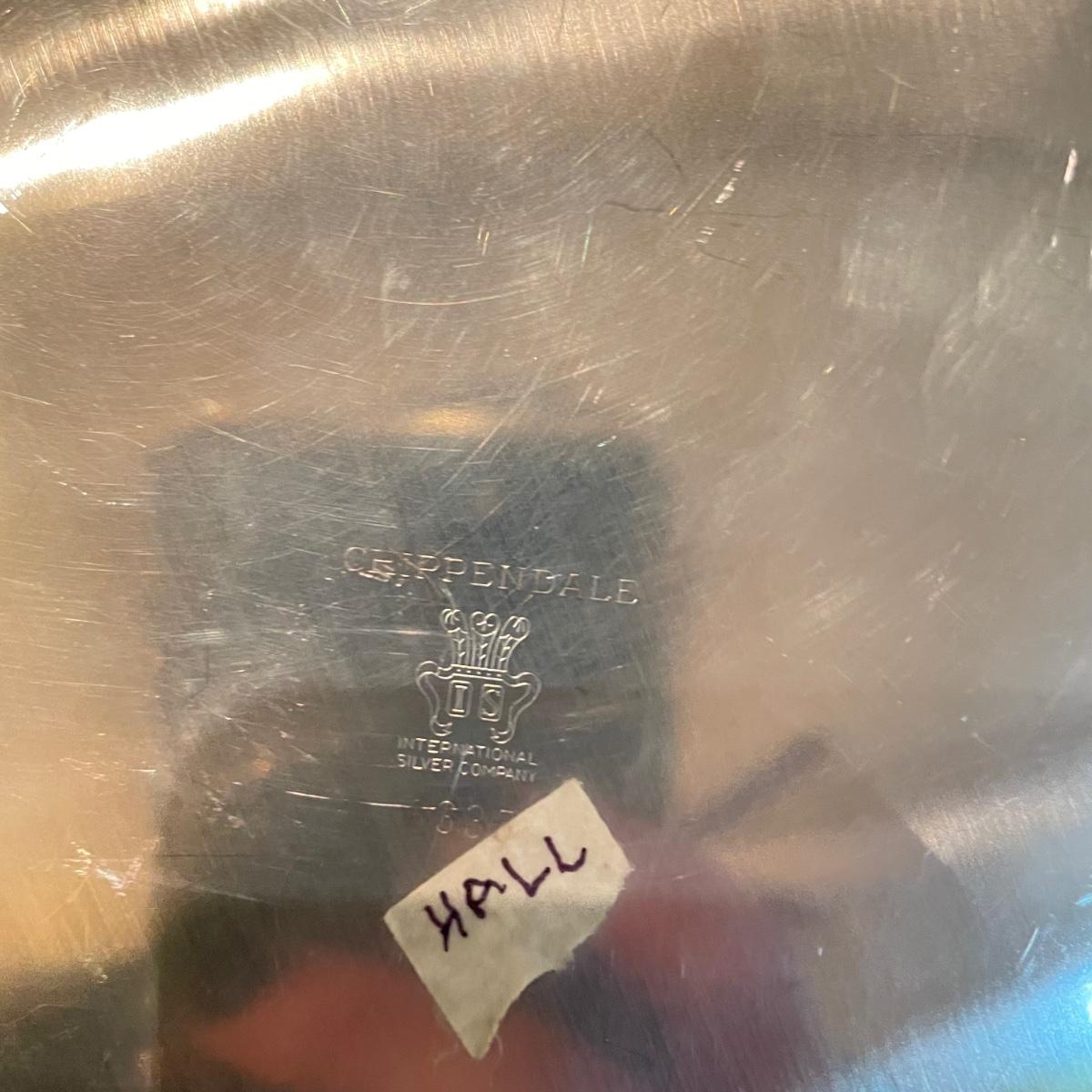 Nice silver plate style collection of party platters and more. Lot includes three Chippendale platters and a fourth matching platter marked FB Rogers. Lot includes a set of round “Joanne” platters, and two ladles for the Wallace punch bowl. The punch bowl measures 12”D x 6”H. The largest round platter has a 14” diameter. See images. Shipping available.
