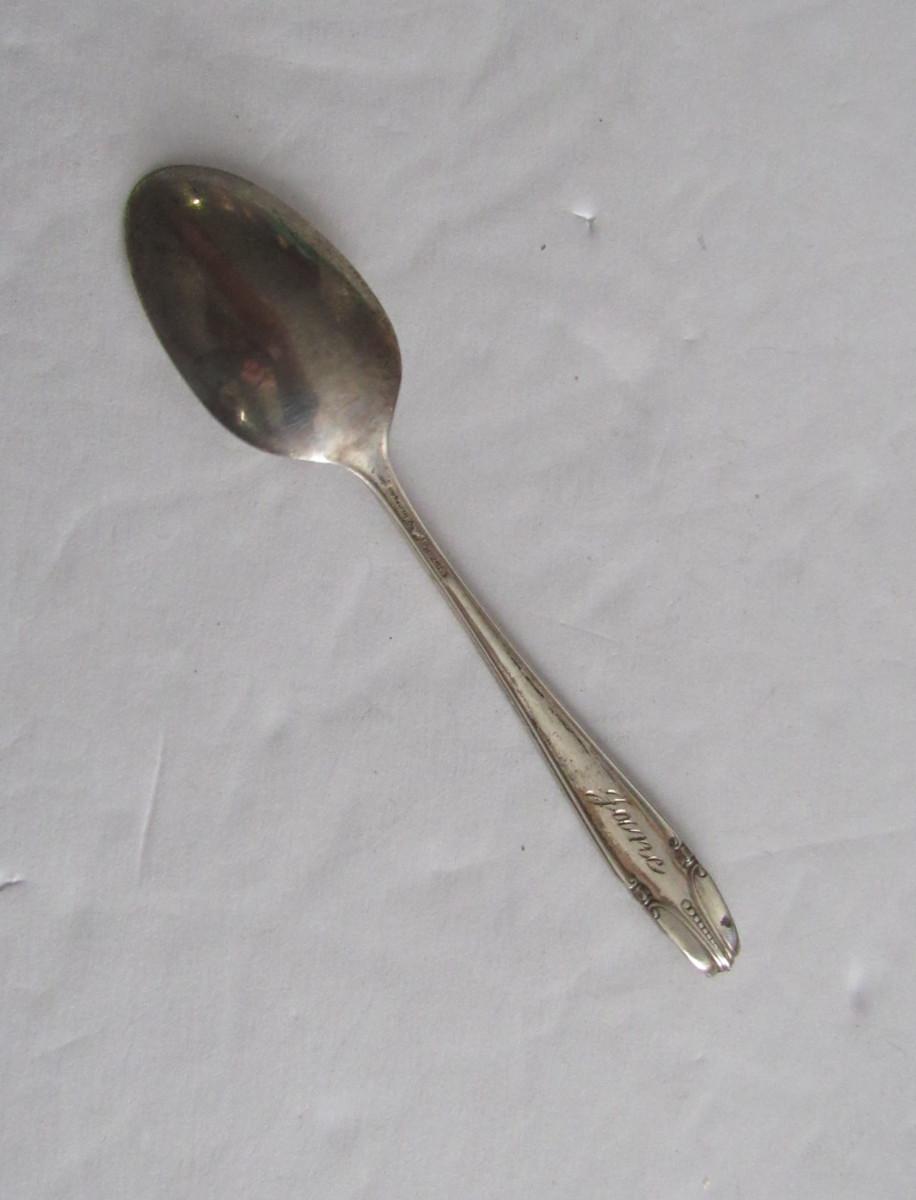 Vintage Wallace Sterling Stradivari pattern condiment spoon. It is small measuring only 4" tall. It is in very niece shape with very little wear. There is a tiny pin point dark dot that I didn't try to clean. Could use a shining up. Dating back to 1937. Marked on back, and Jane is etched into the back handle. Shipping is available at actual shipping cost plus $5.00 handling fee per box for supplies/labor. See our terms for details. All sales are final. Condition notes may not be all inclusive, we may miss some issues as most vintage items are not in mint condition and have some degree of wear, paint loss, etc, but we always try to note obvious damage.