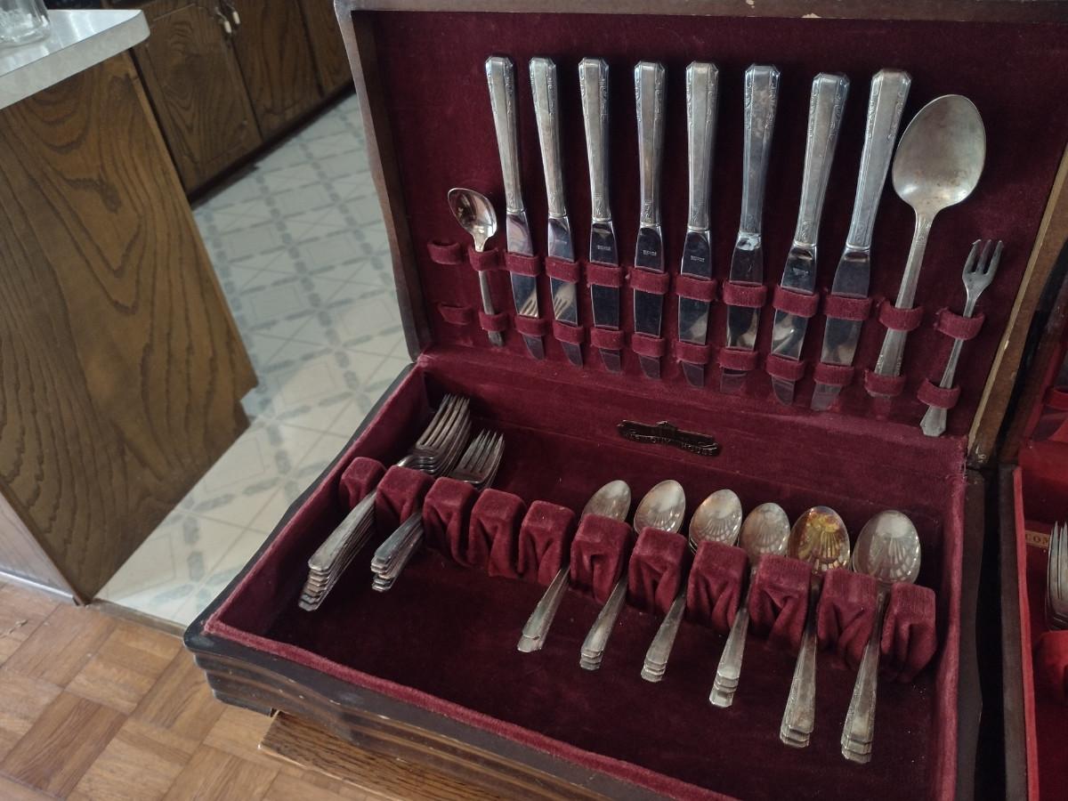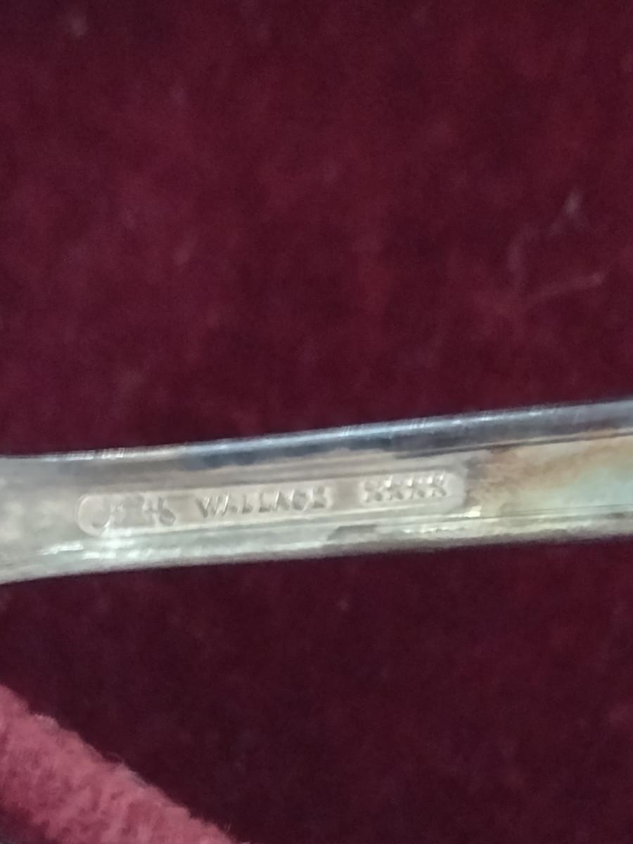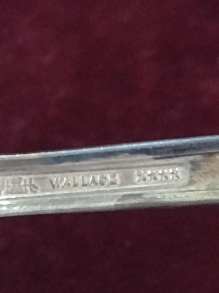 Wallace XXXX Flatware- Approx 47 Pieces- Storage Box Included. Dinner knife- 8, large spoon- 6, regular spoon- 15, salad fork- 7, dinner fork-8, sugar spoon- 1, vegetable spoon- 1, cocktail seafood fork- 1.