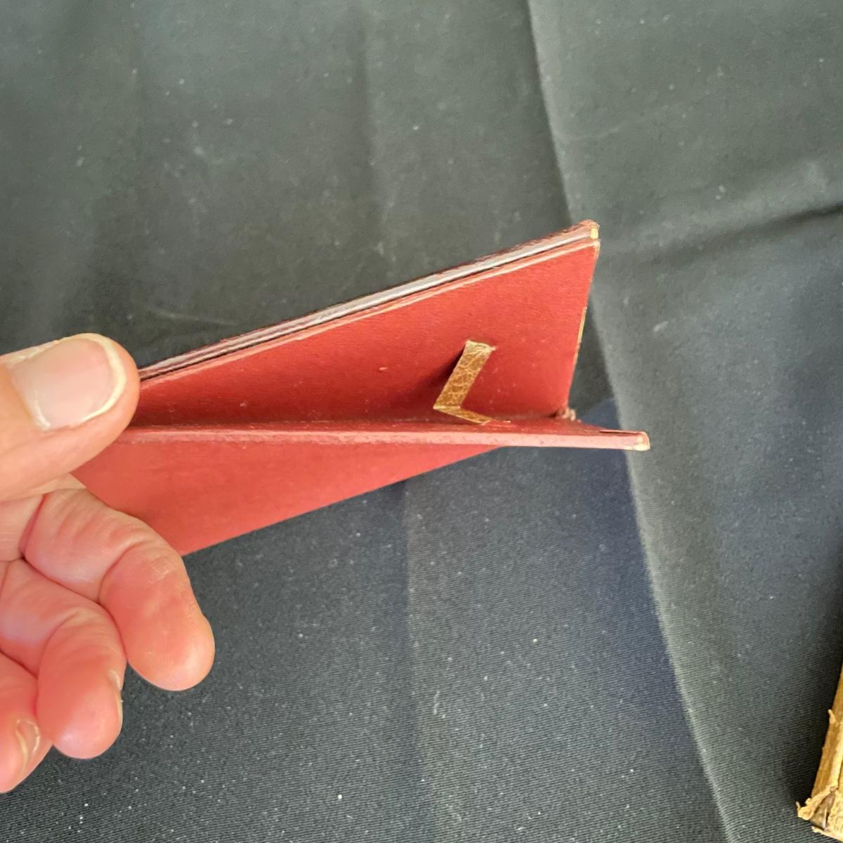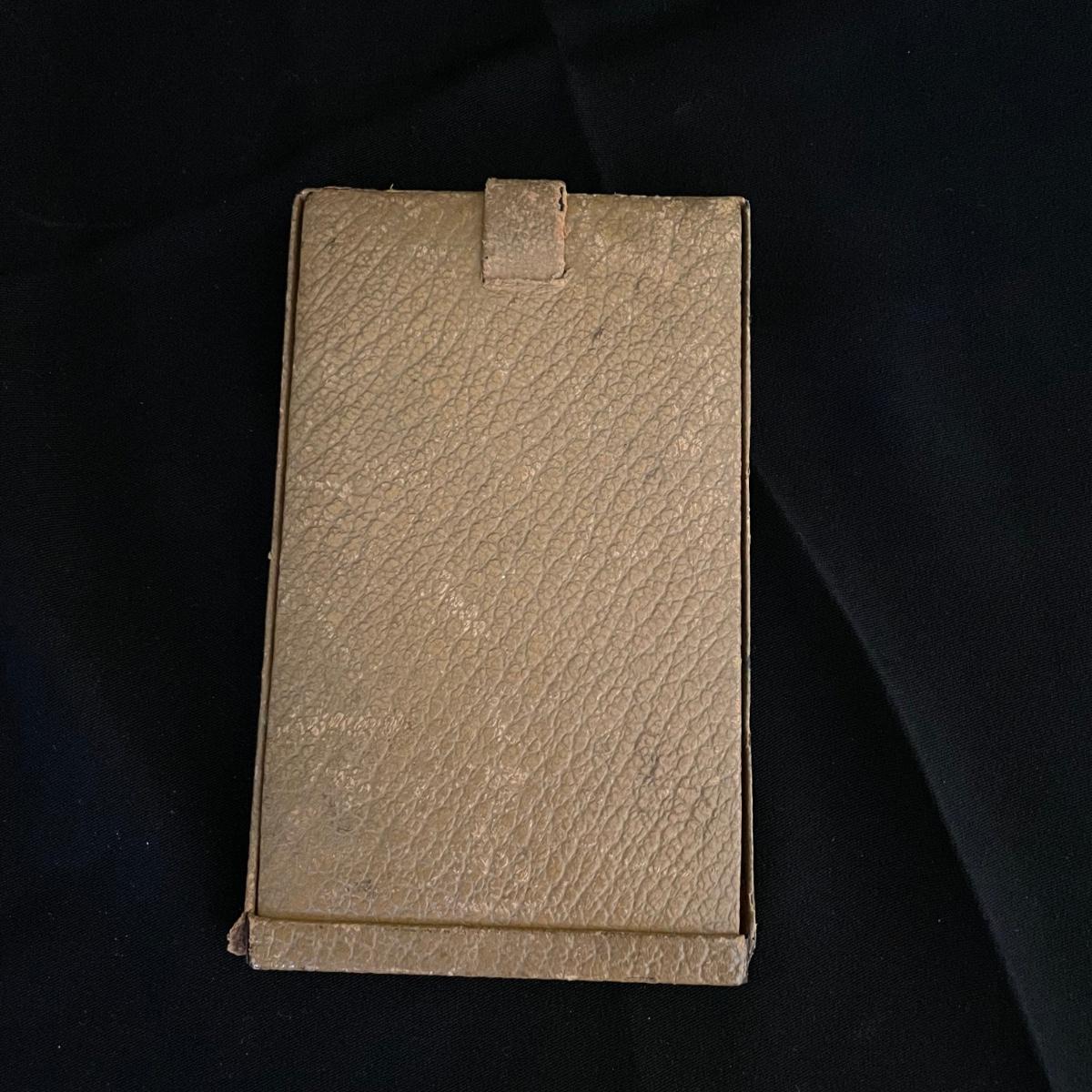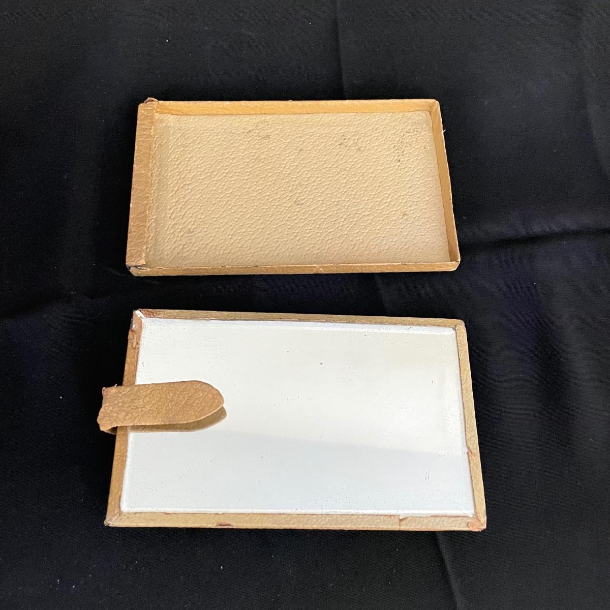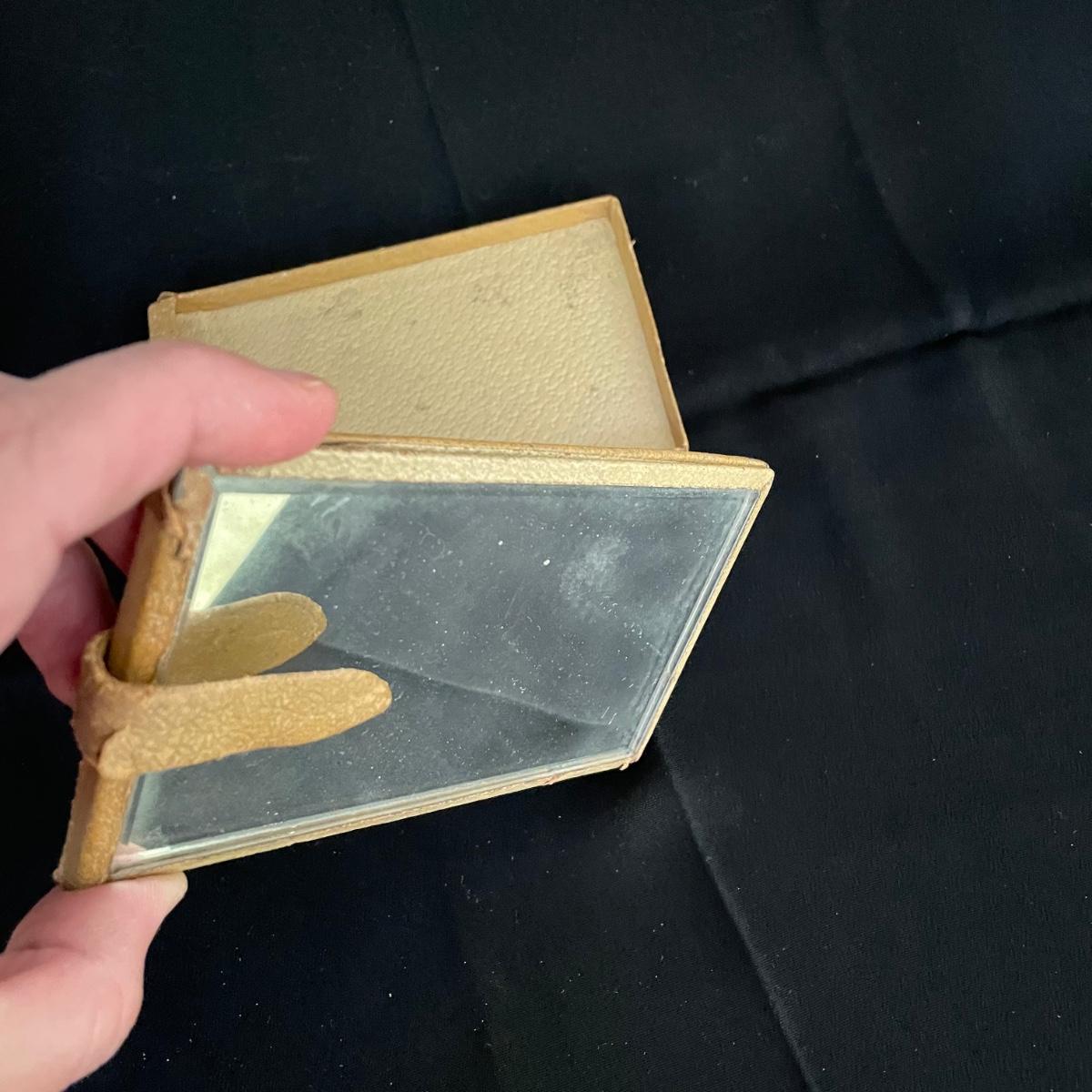 Vintage and newer leather-like items. Leather hand bag with a phone pocket has a bit of wear showing on the edges, but it has a lot of life left. There’s a “Real Morocco” wallet, a leather tabletop 2”x 3” frame and a vintage pocket compact. The compact can stand on its own and is ideal for travel! See images. Shipping available.