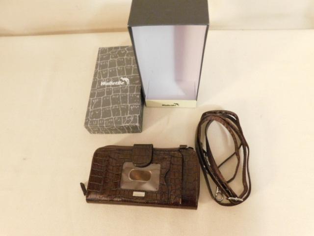 Walletbe Brown Croc Design Crossbody Wallet with Box