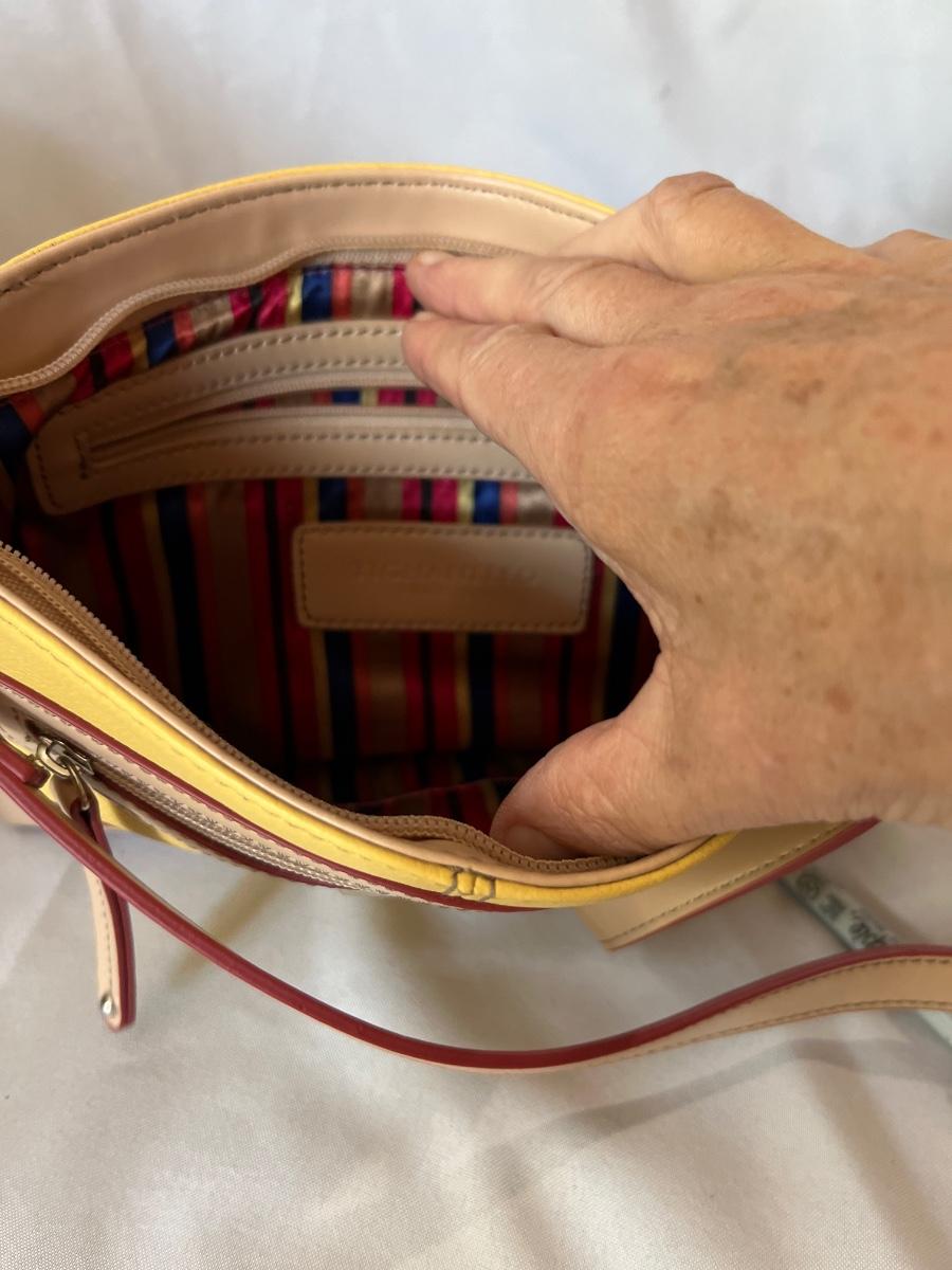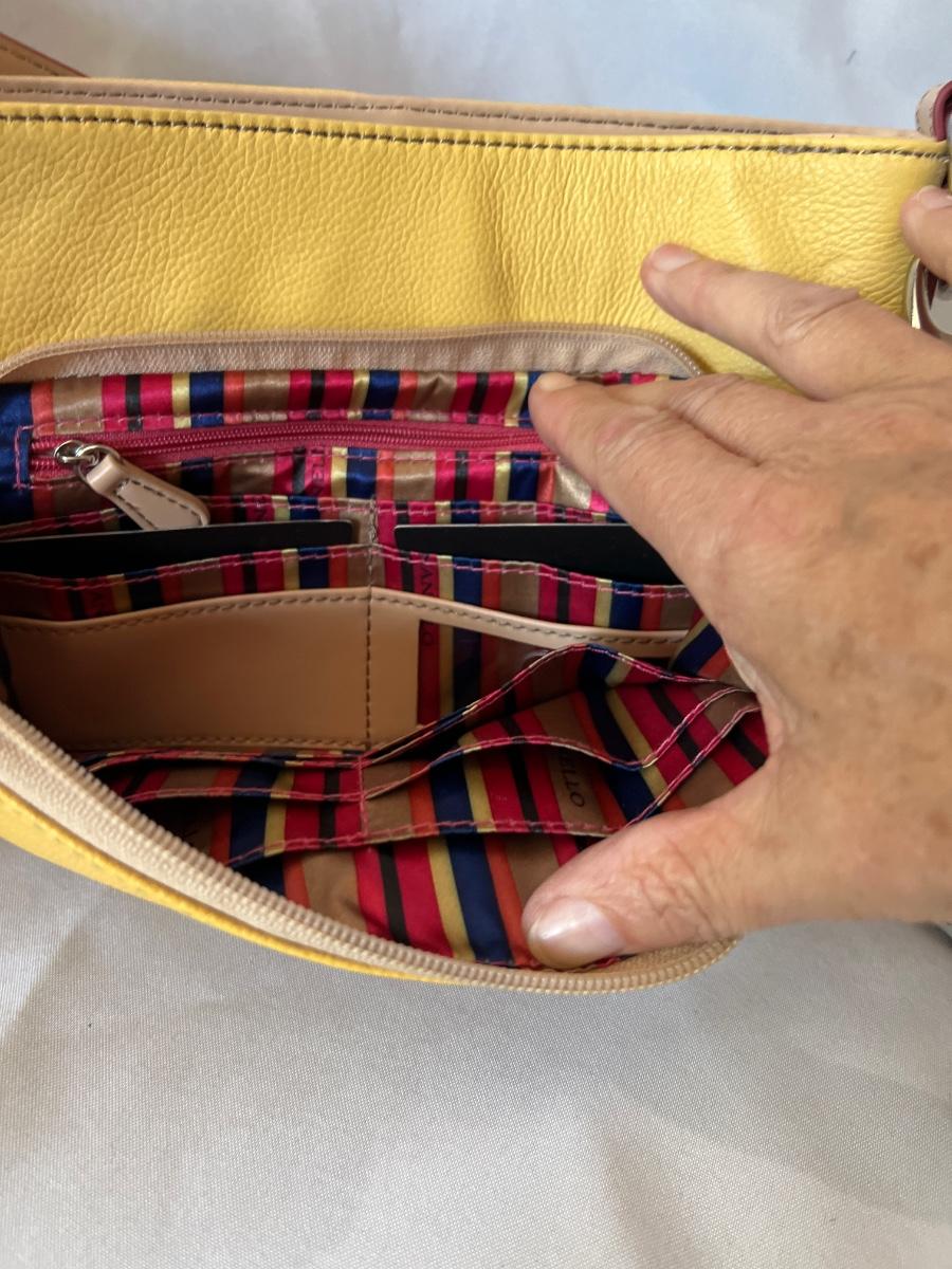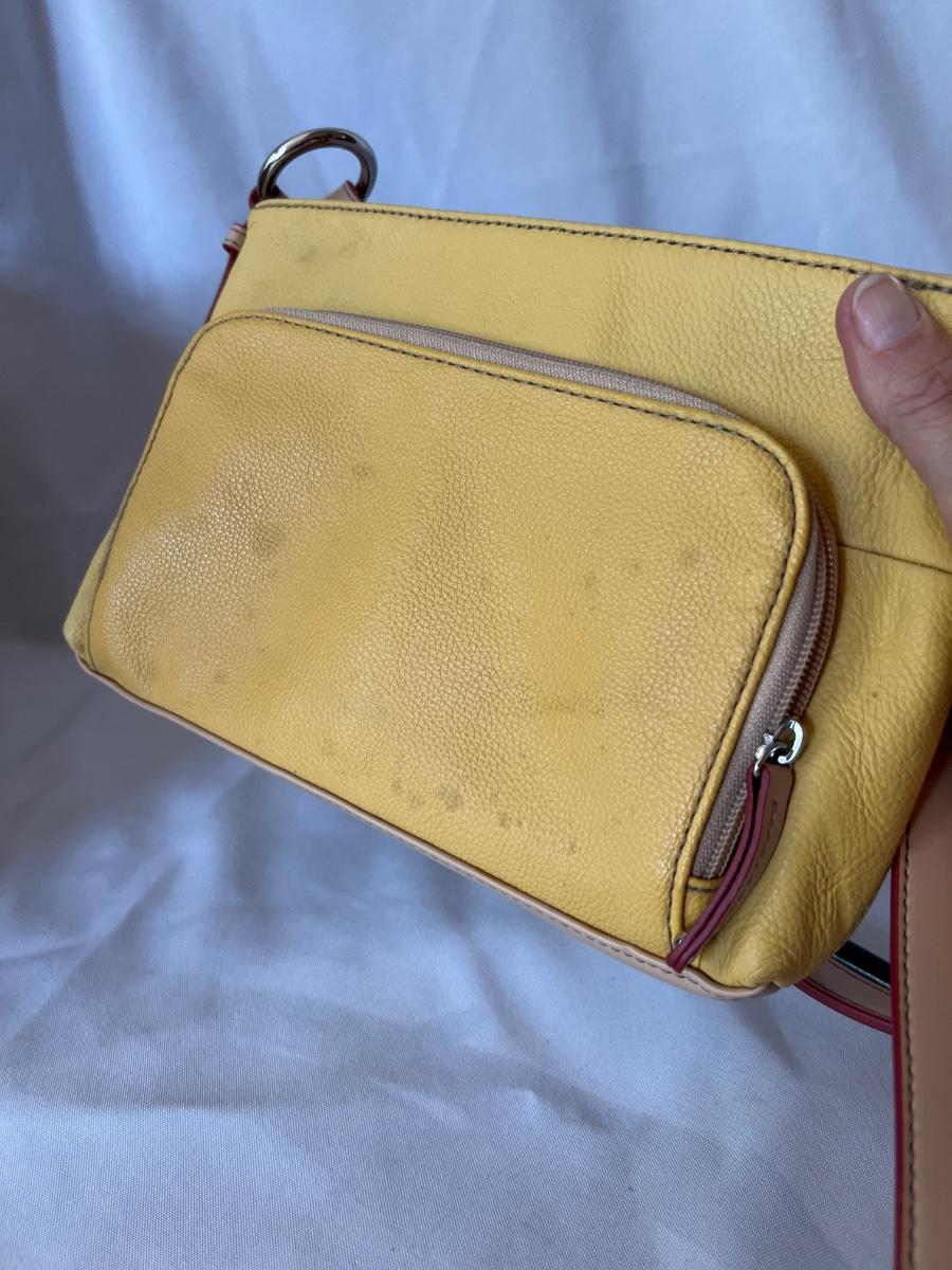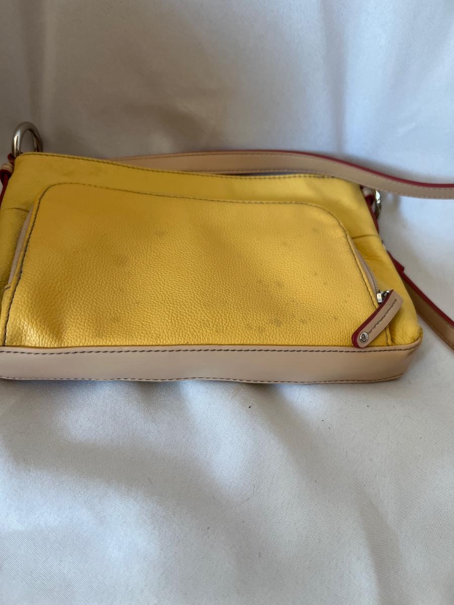 Three wallets, two clutch and two purses with handles makes up this lot of seven items that are mostly faux suede or leather. See images for brand names. Note the unmarked red Wallet with faux diamond skull has a small rip in the seam on the underside and the yellow Tignanello has some light marks on the back of the purse that should come clean and the light tan purse has a small mark shown in an image which may be permanent.