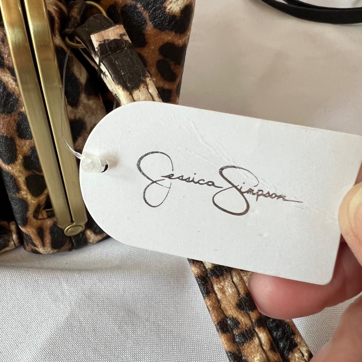 Jessica Simpson leopard clutch measures 10” x 4” x 5” H.