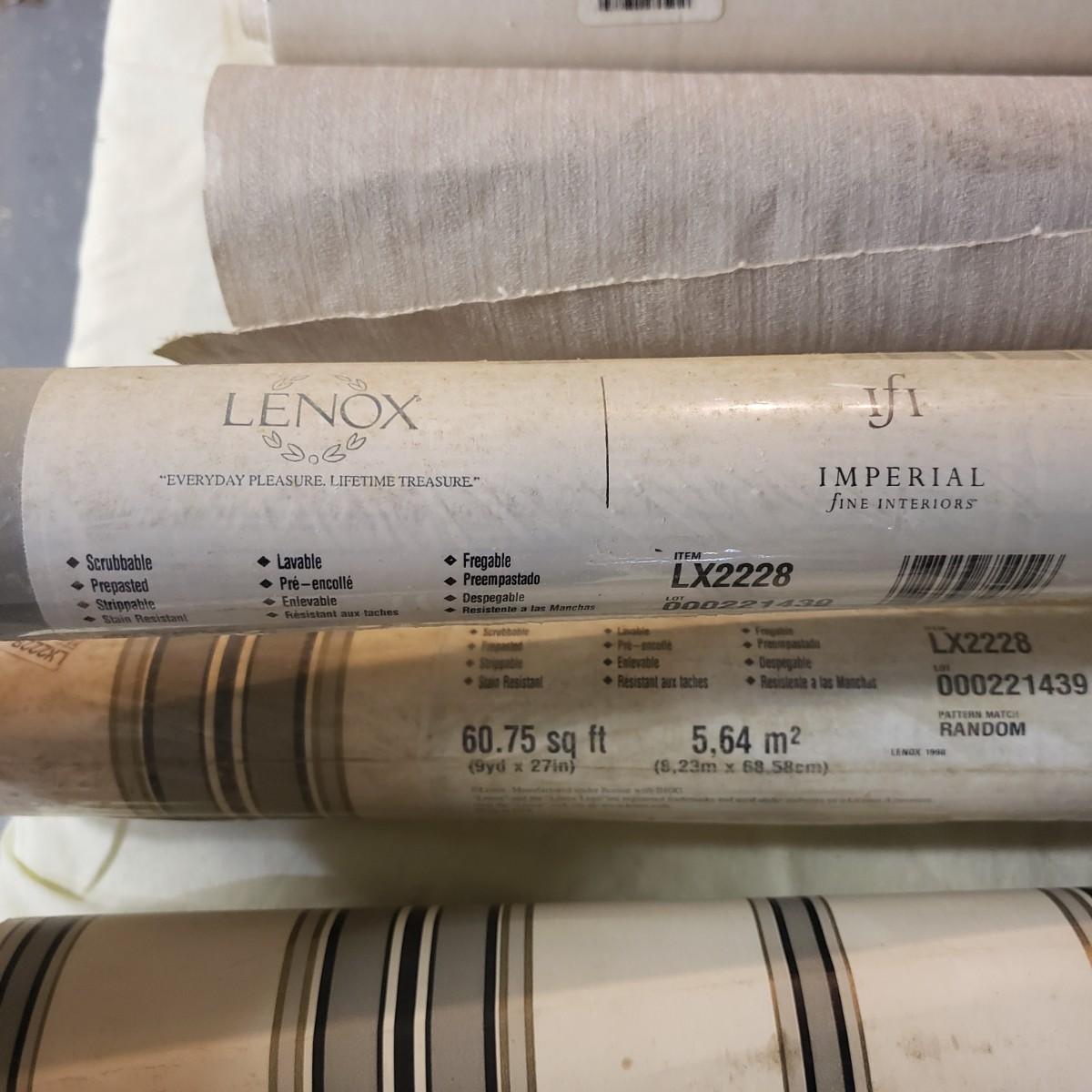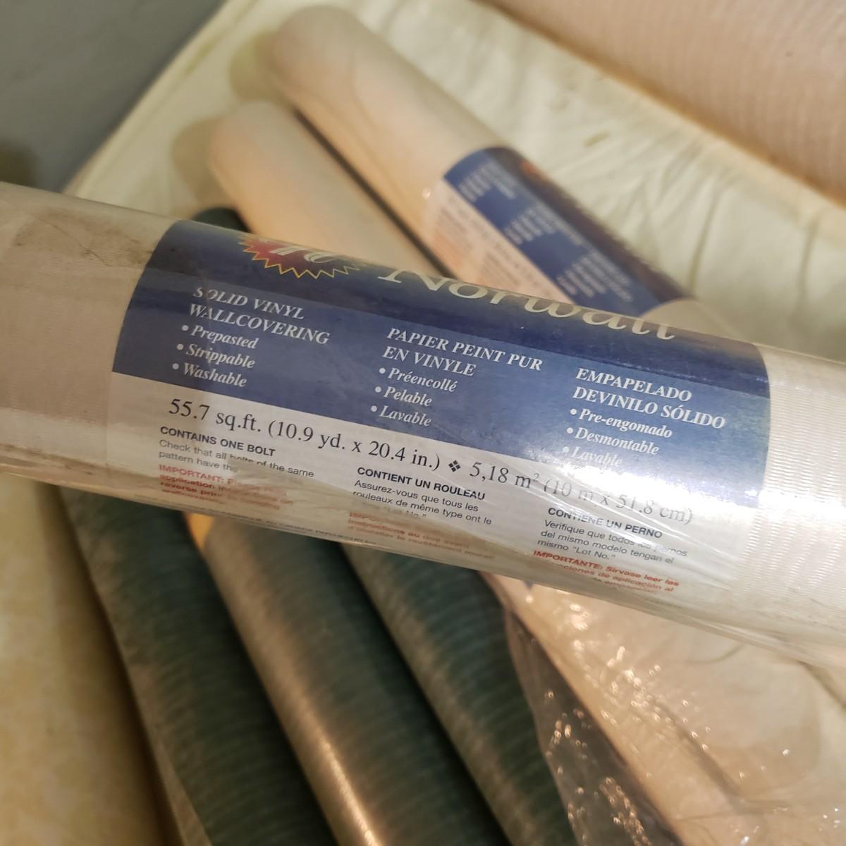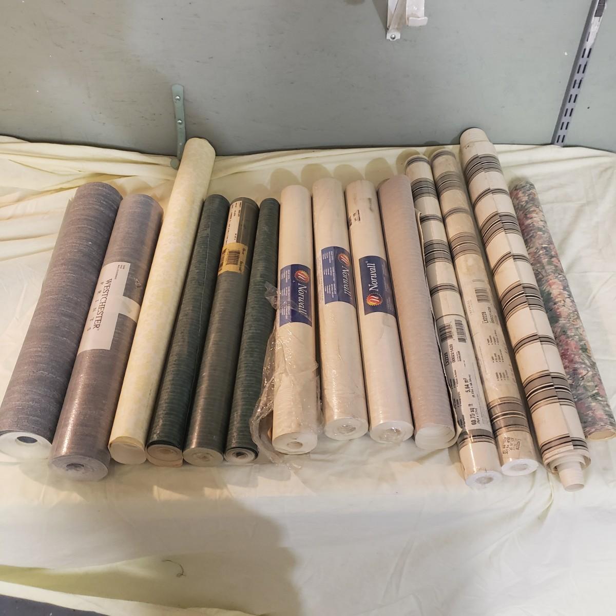 This lot includes 14 rolls of new and partial used wallpaper. See pictures for colors and brands.