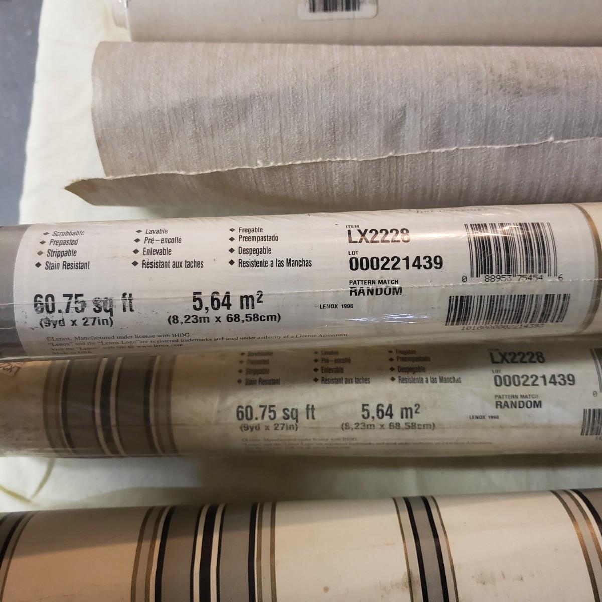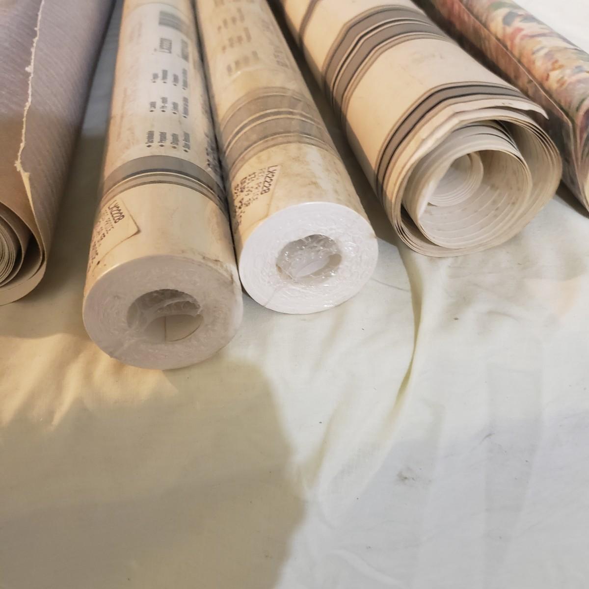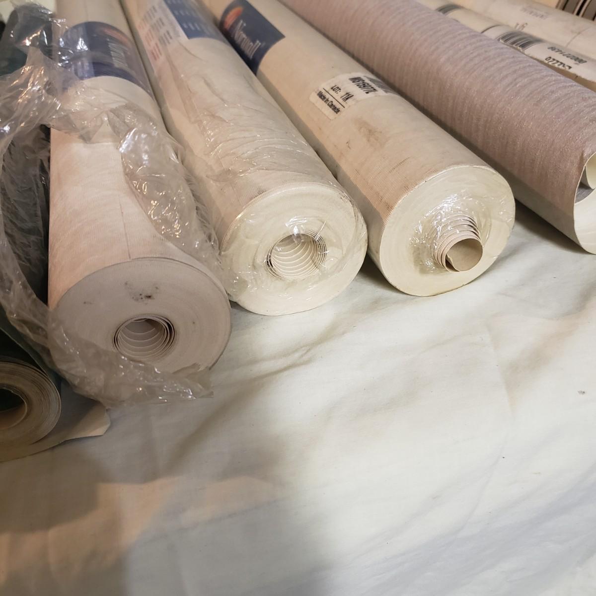 This lot includes 14 rolls of new and partial used wallpaper. See pictures for colors and brands.