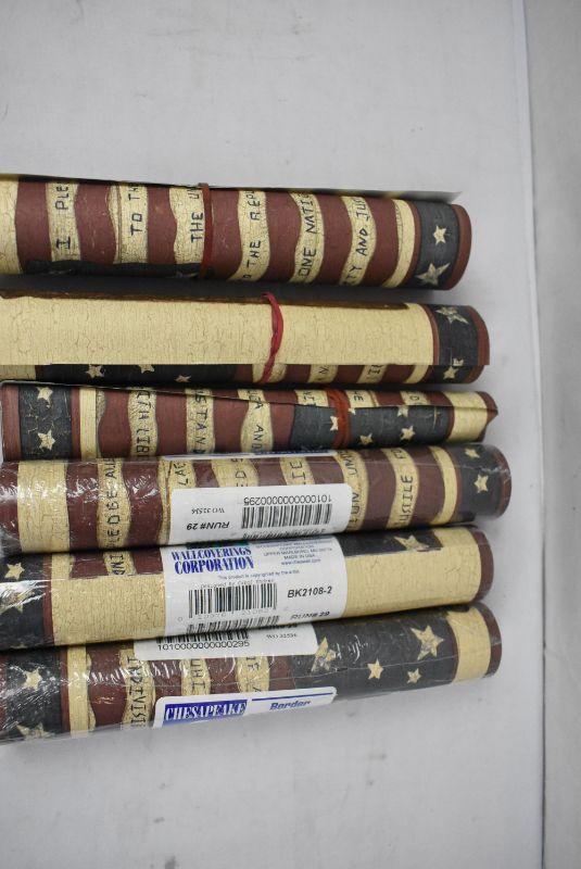 Wallpaper Borders, 7 Rolls. 6 patriotic (3 open 3 new) and 1 New Fishing