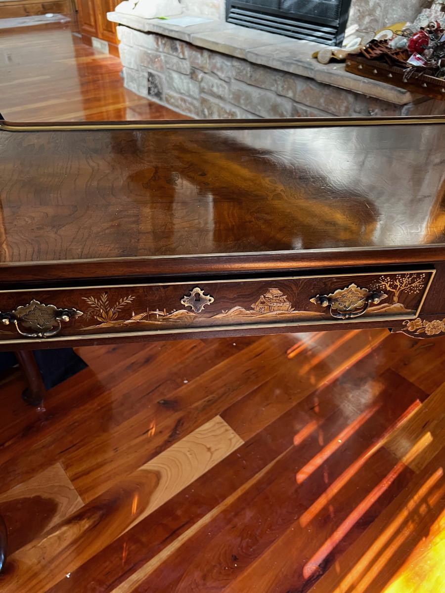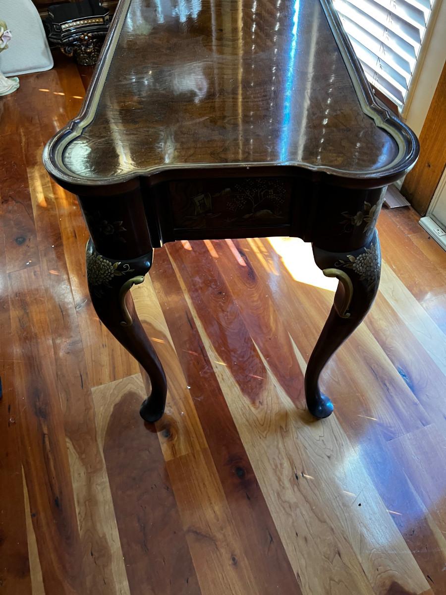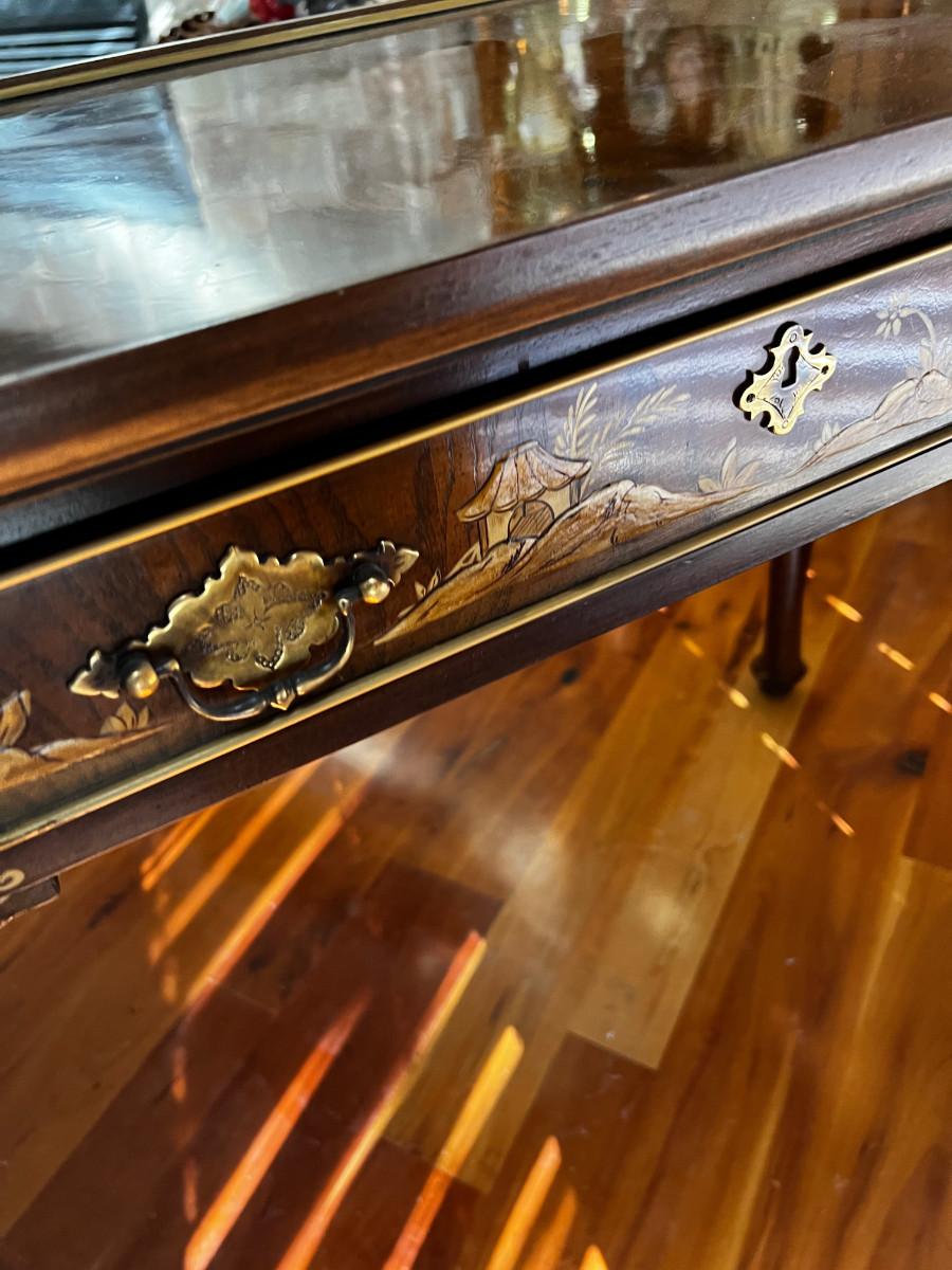 Walnut Burl Console Table , by Hekmen has a  Chinoiserie Accents on front