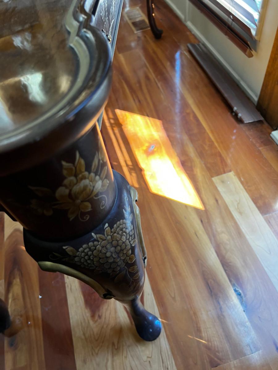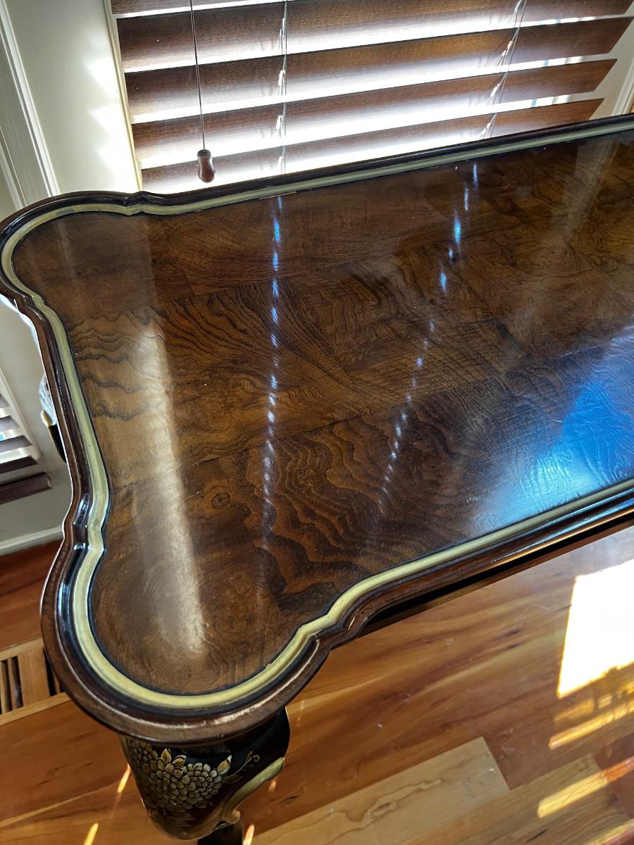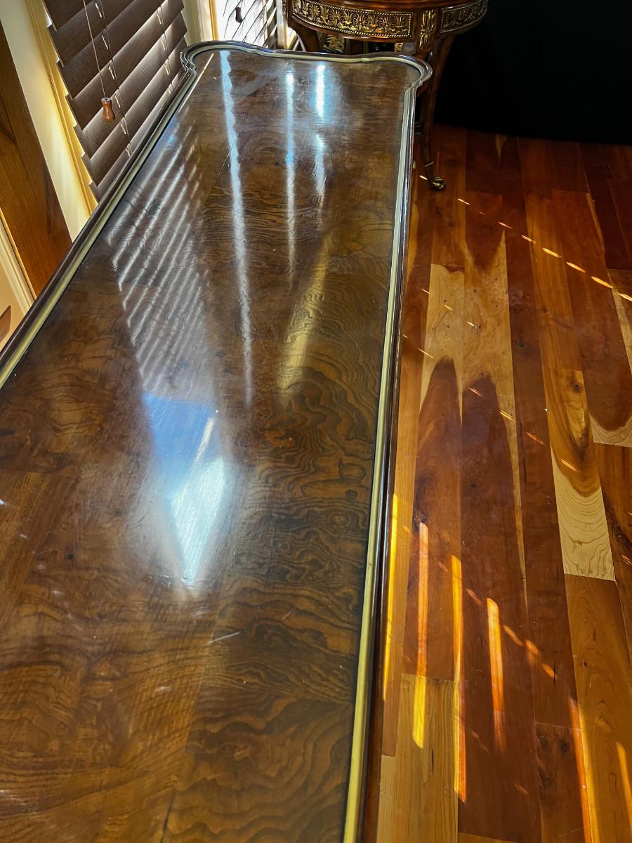 Walnut Burl Console Table , by Hekmen has a Chinoiserie Accents on front