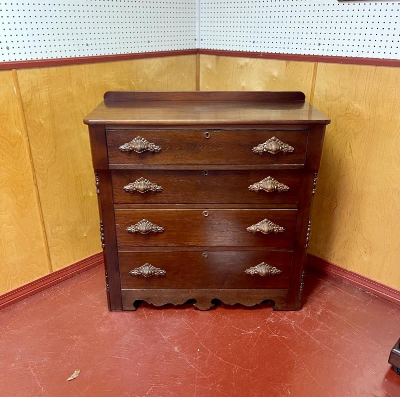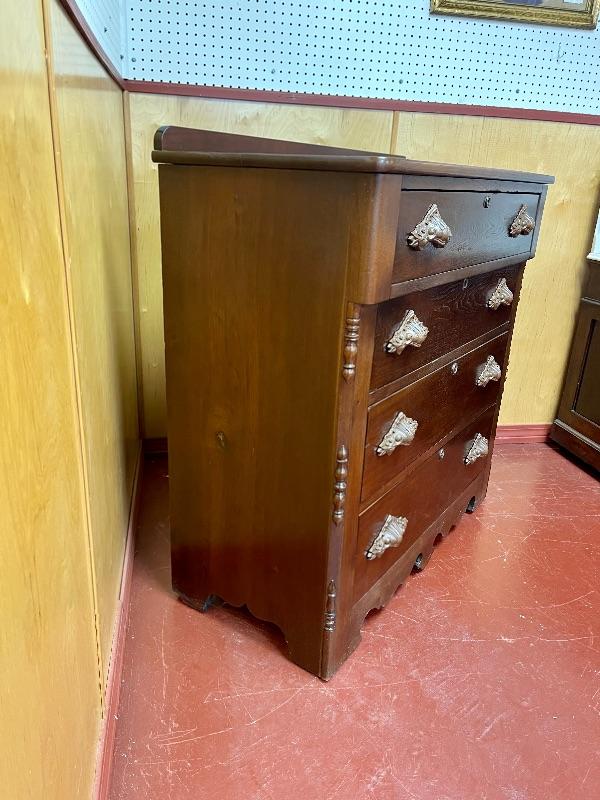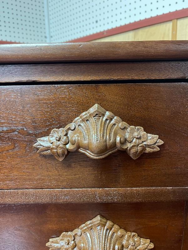 Dove Tail drawers. Hand carved pulls. 4 drawers.