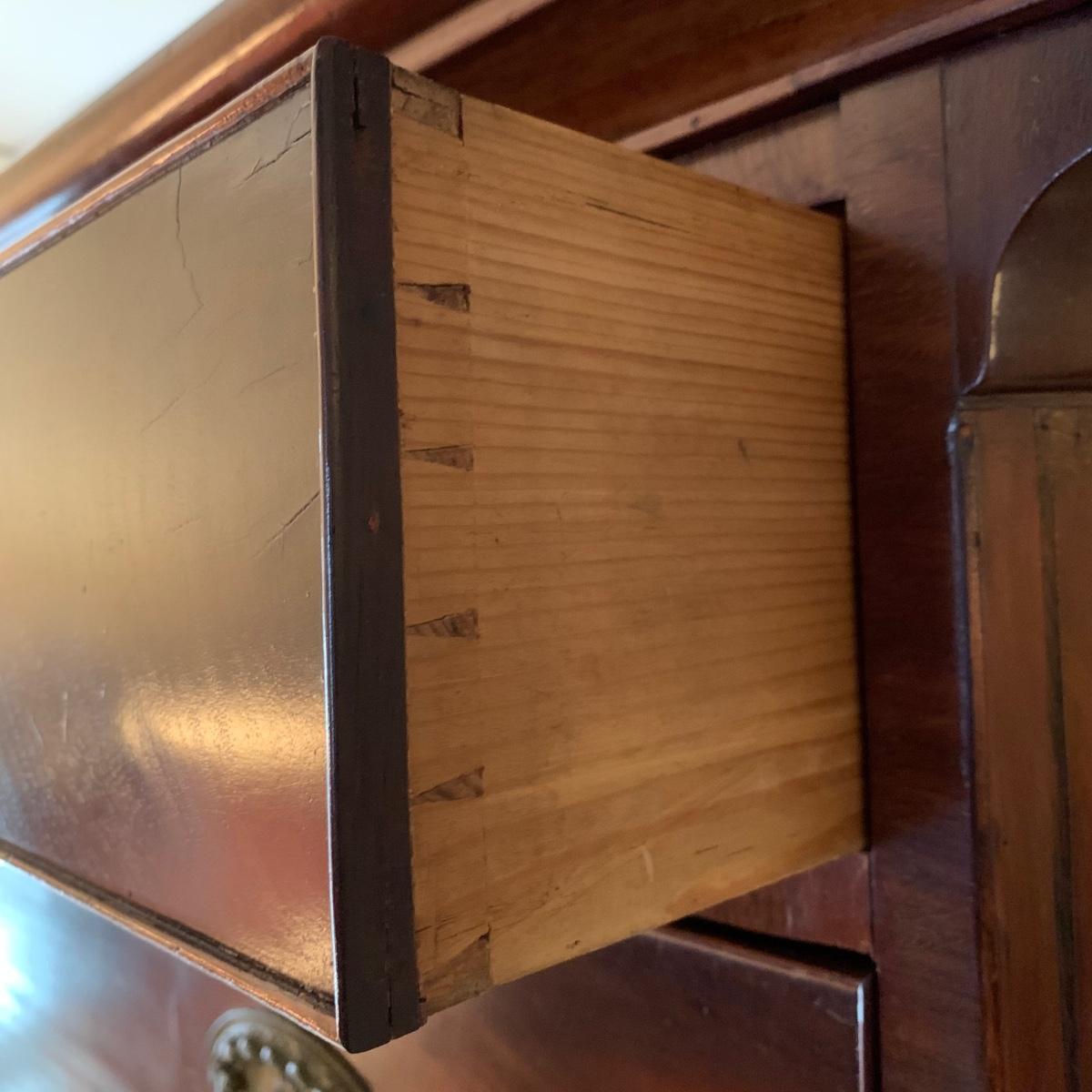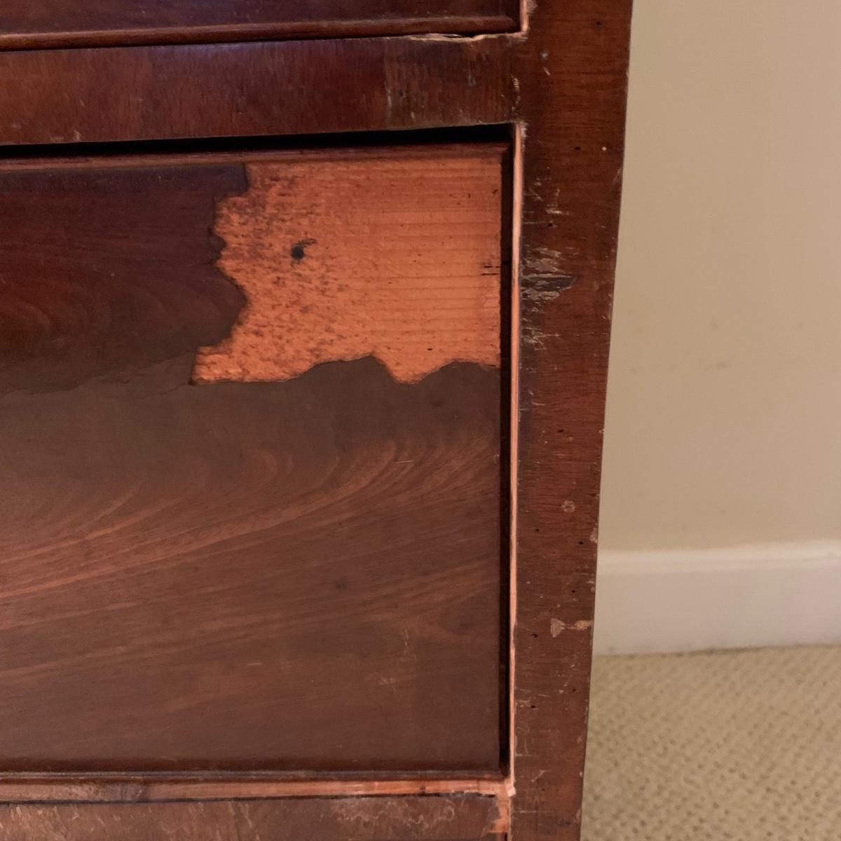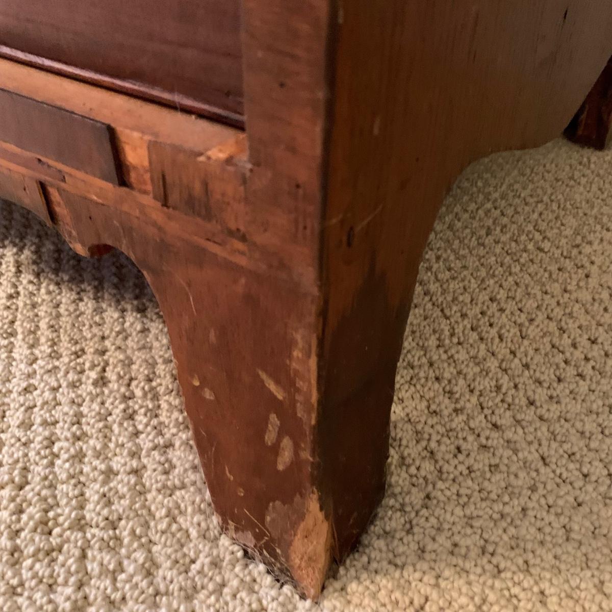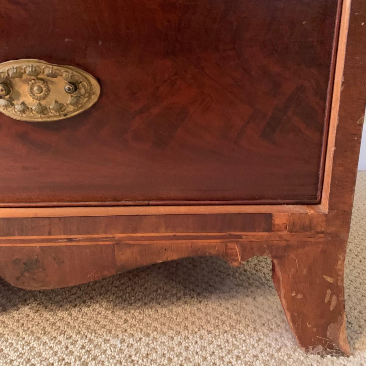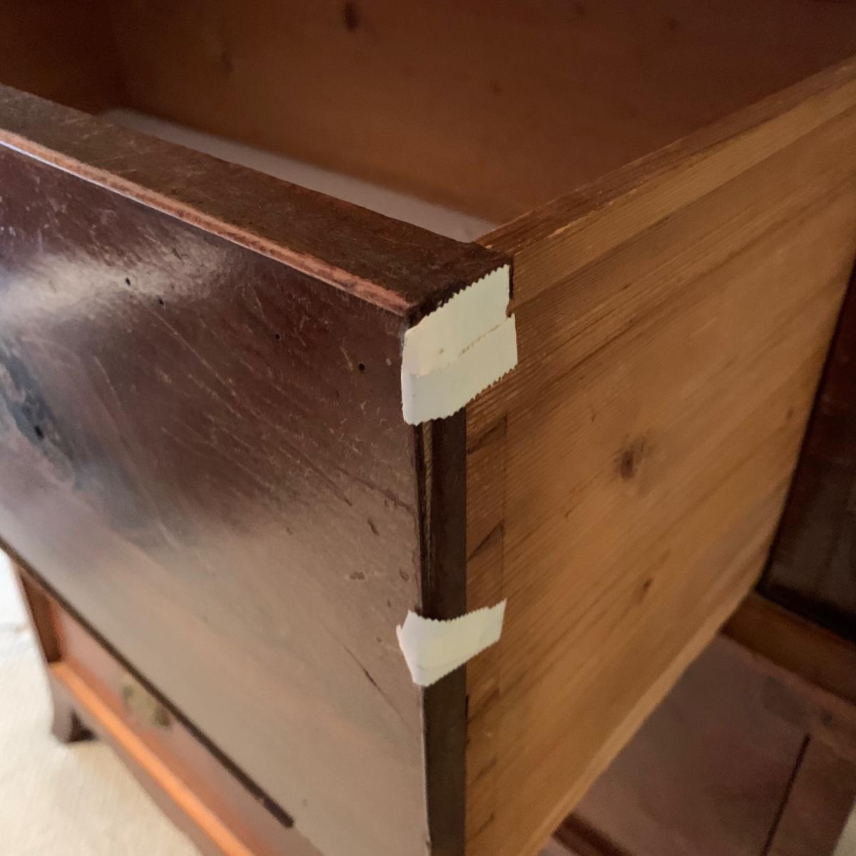 Timeless solid wood chest on chest that appears to be walnut. Piece is crafted with dovetail joinery and features wood inlay. Handles and locks are brass. Please note, piece does not come with keys. Chest measures approximately, 40.5” x 21” x 72”H and is two pieces that just sit on top of each other. Local pickup only. Winning bidder must bring assistance to help move and load this item due to its weight and/or size. Item will need to be moved down flight of stairs and throughout home to exit.