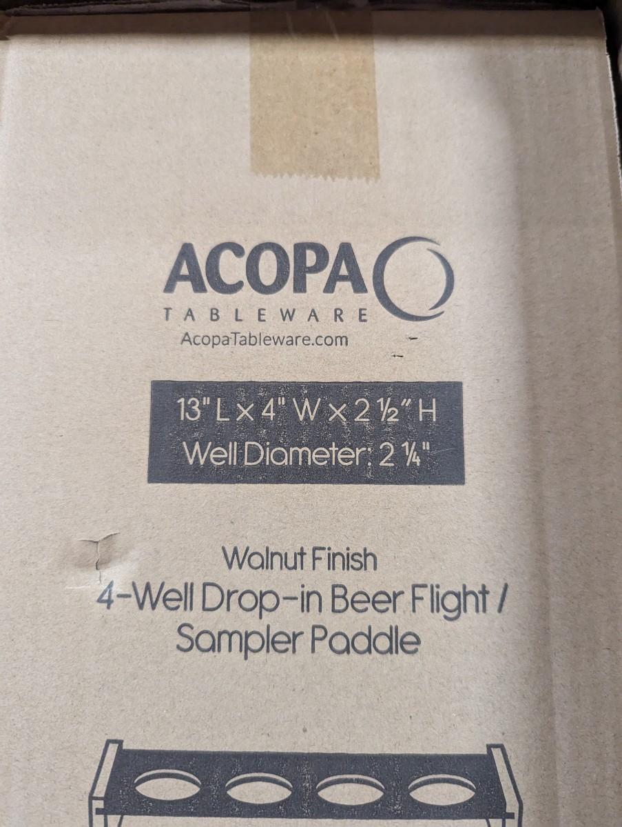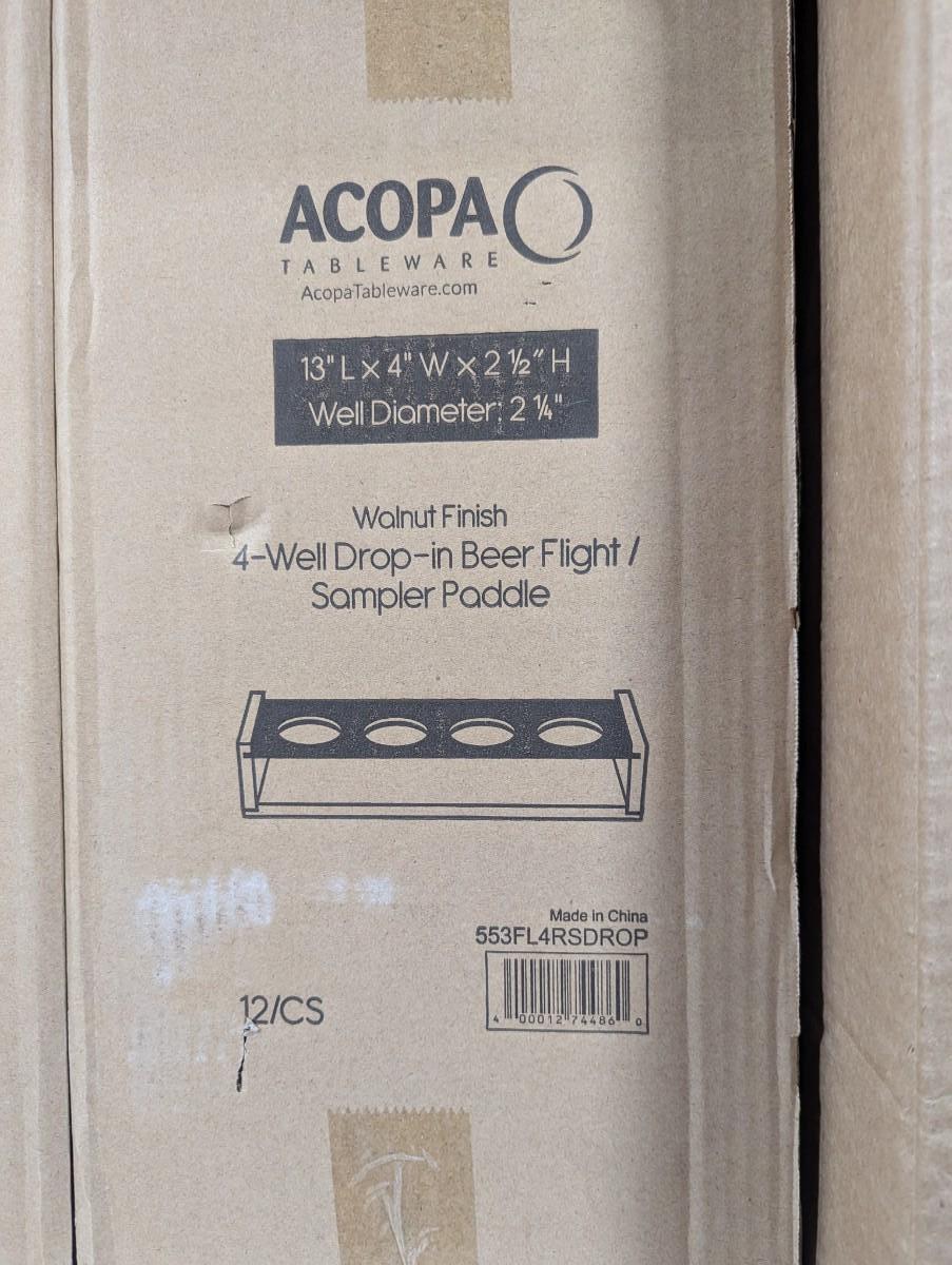 Walnut Finish 4 Well Drop In Beer Flight/Sampler Paddle Choice 2