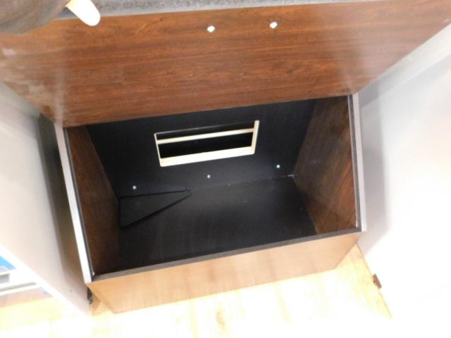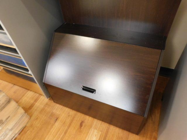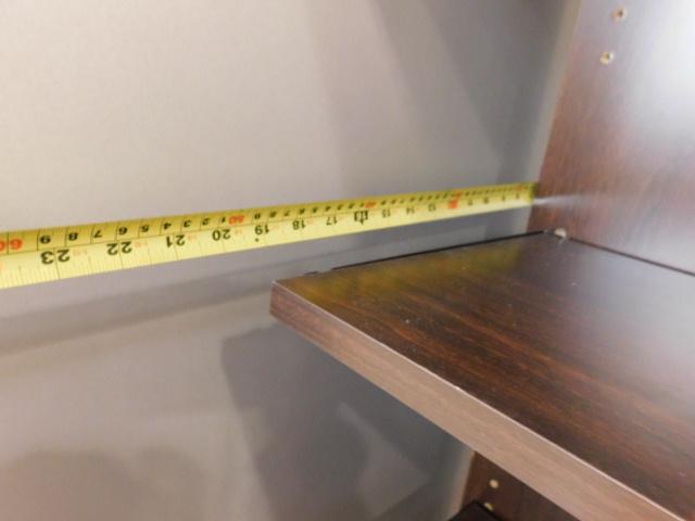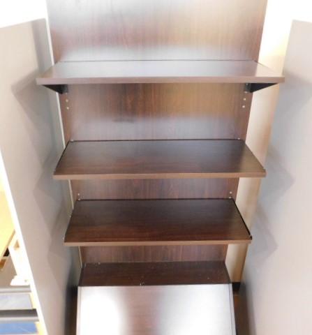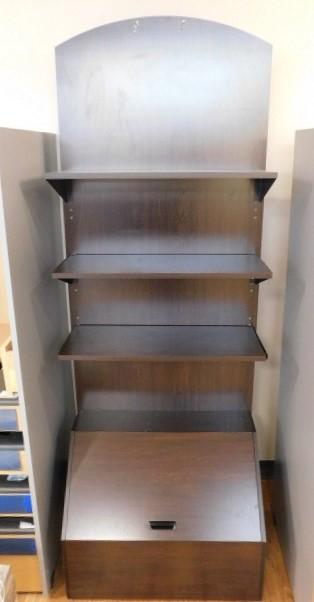 Walnut Finish Laminate Shelf Display with Storage Cabinet 31"x19"x89" in very good condition. Would make a great display for commercial or private application.