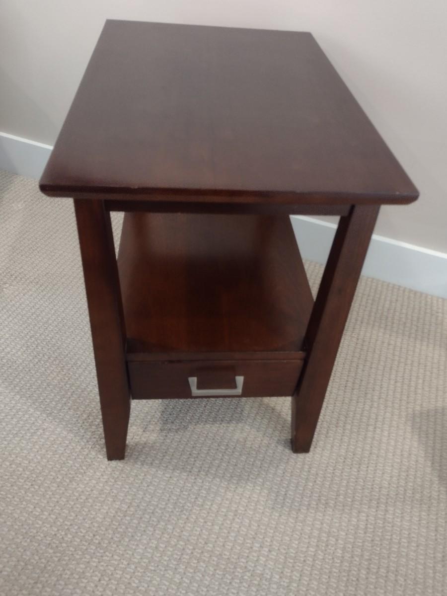 Walnut Finish Side Table with Single Drawer by Leek Home
