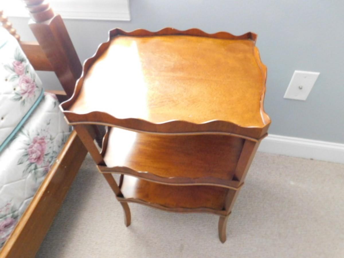 Walnut Finish Vintage Multi-Tier Side Table