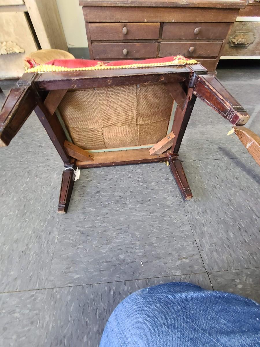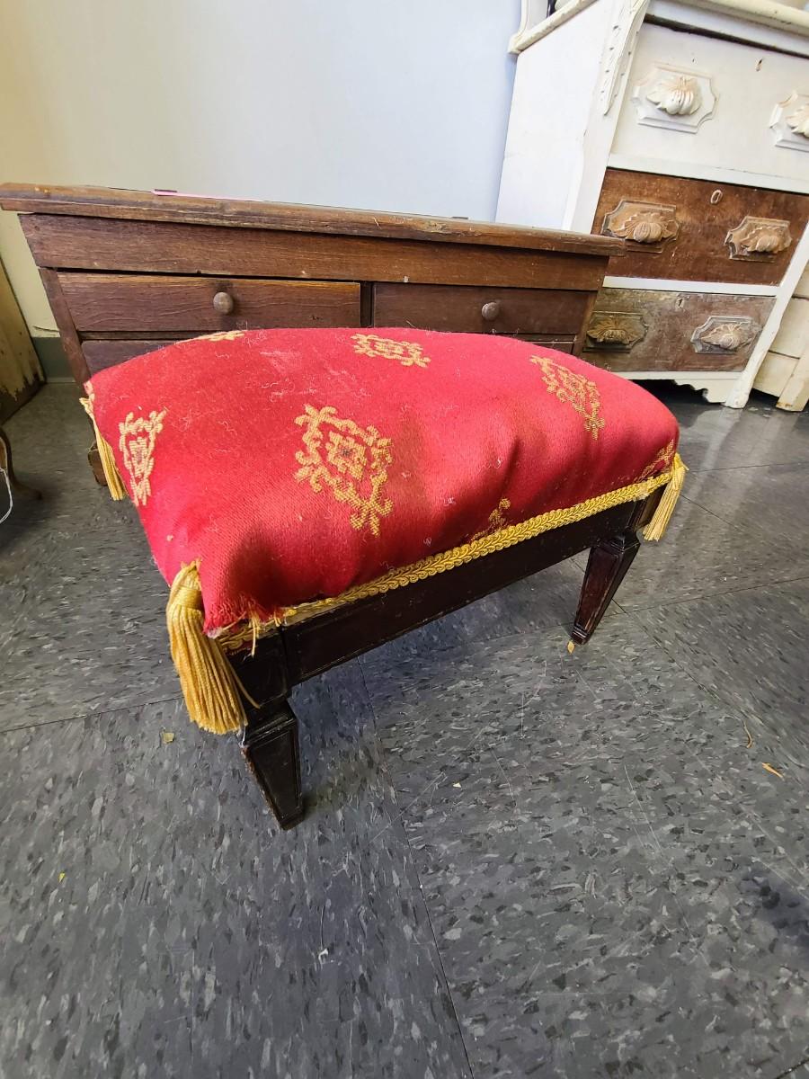 Walnut Footstool - Red with Tassels - 14 x 11 inches and 10 tall