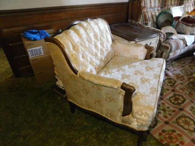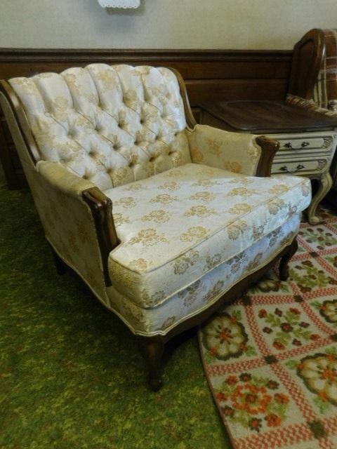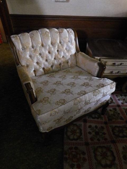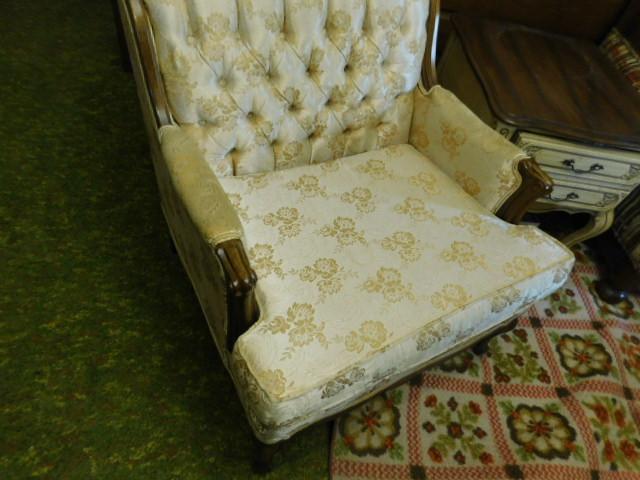 Walnut Frame French Style Button Tufted Back Chair Sateen Upholstered in great shape matches couch previously listed