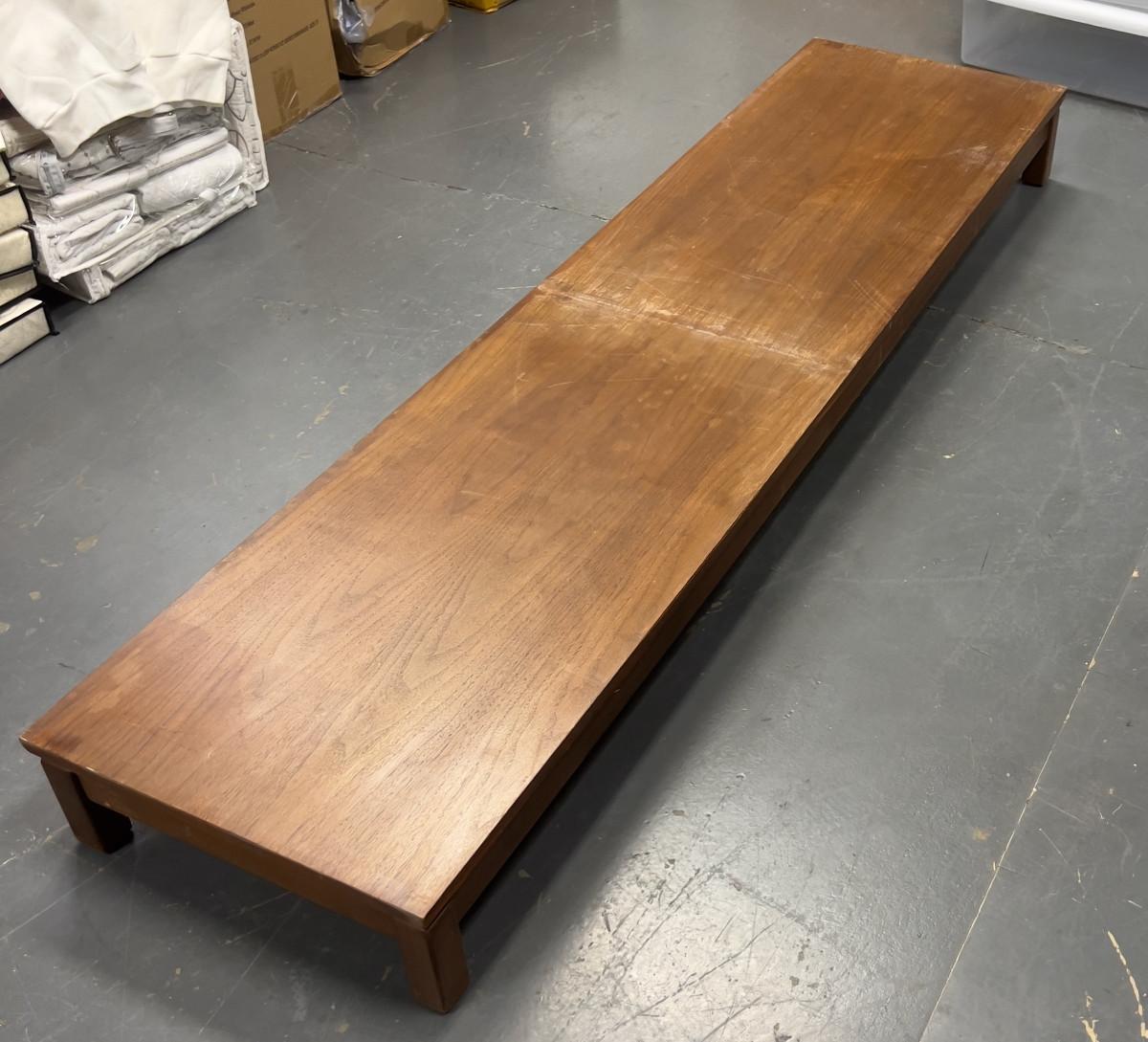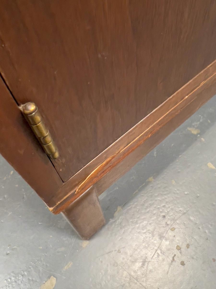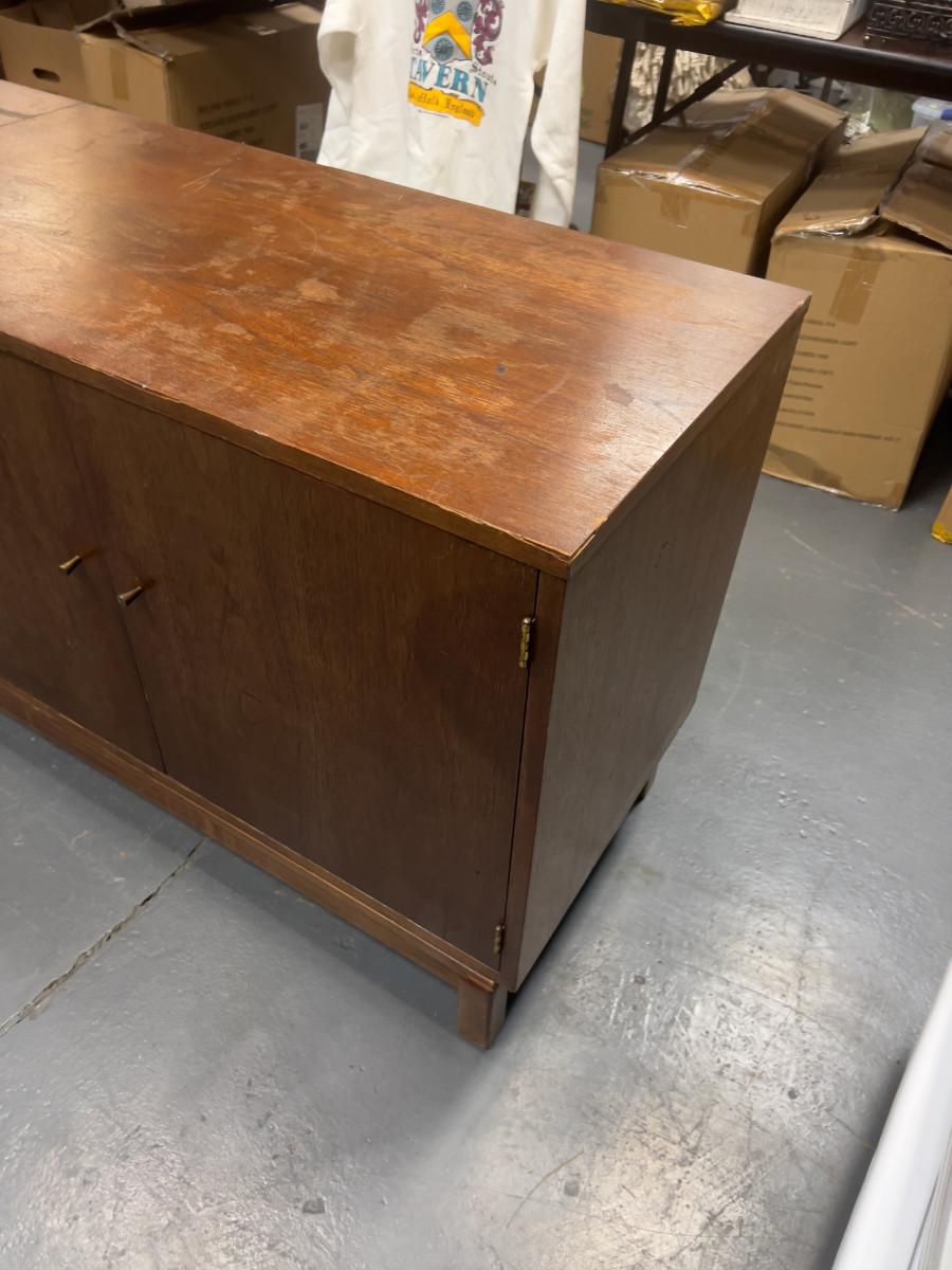 Great Storage. Has a Platform and 2 cabinet sections with a shelf inside. NO MAKERS MARK. Needs to be re-stored with the Stains, Waxes and oil. Could Paint and totally give it a new look.