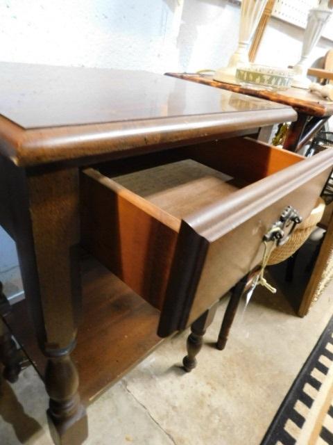 Walnut Side Table with Drawer 16"x13"x27" expect some wear and scratches