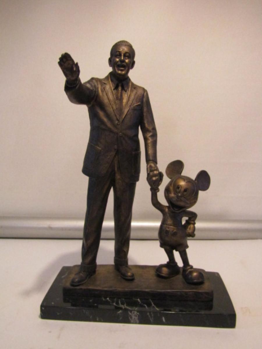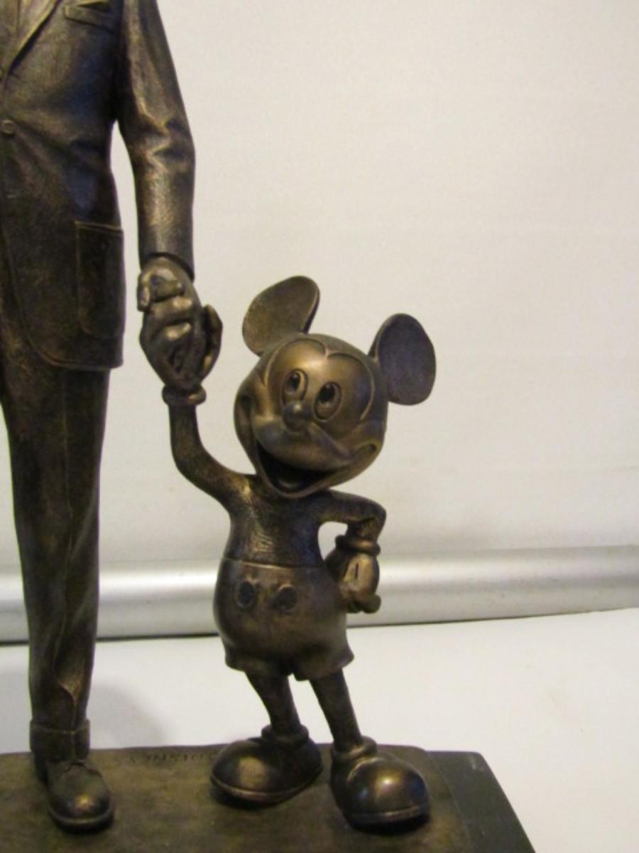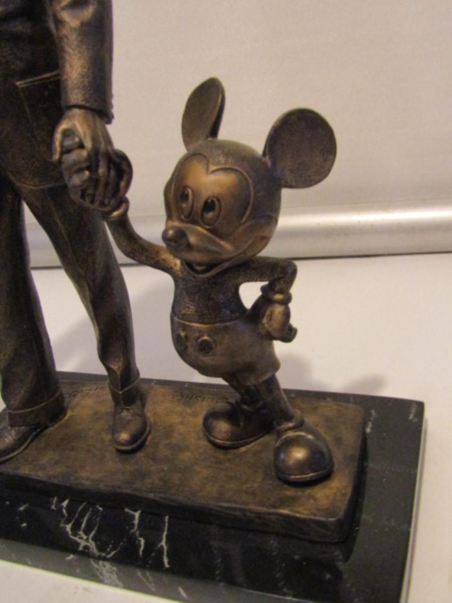 Walt Disney and Mickey Mouse Cold Cast Bronze Statue by Blaine Gibson- Approx 14 1/2" Tall, 10" Long