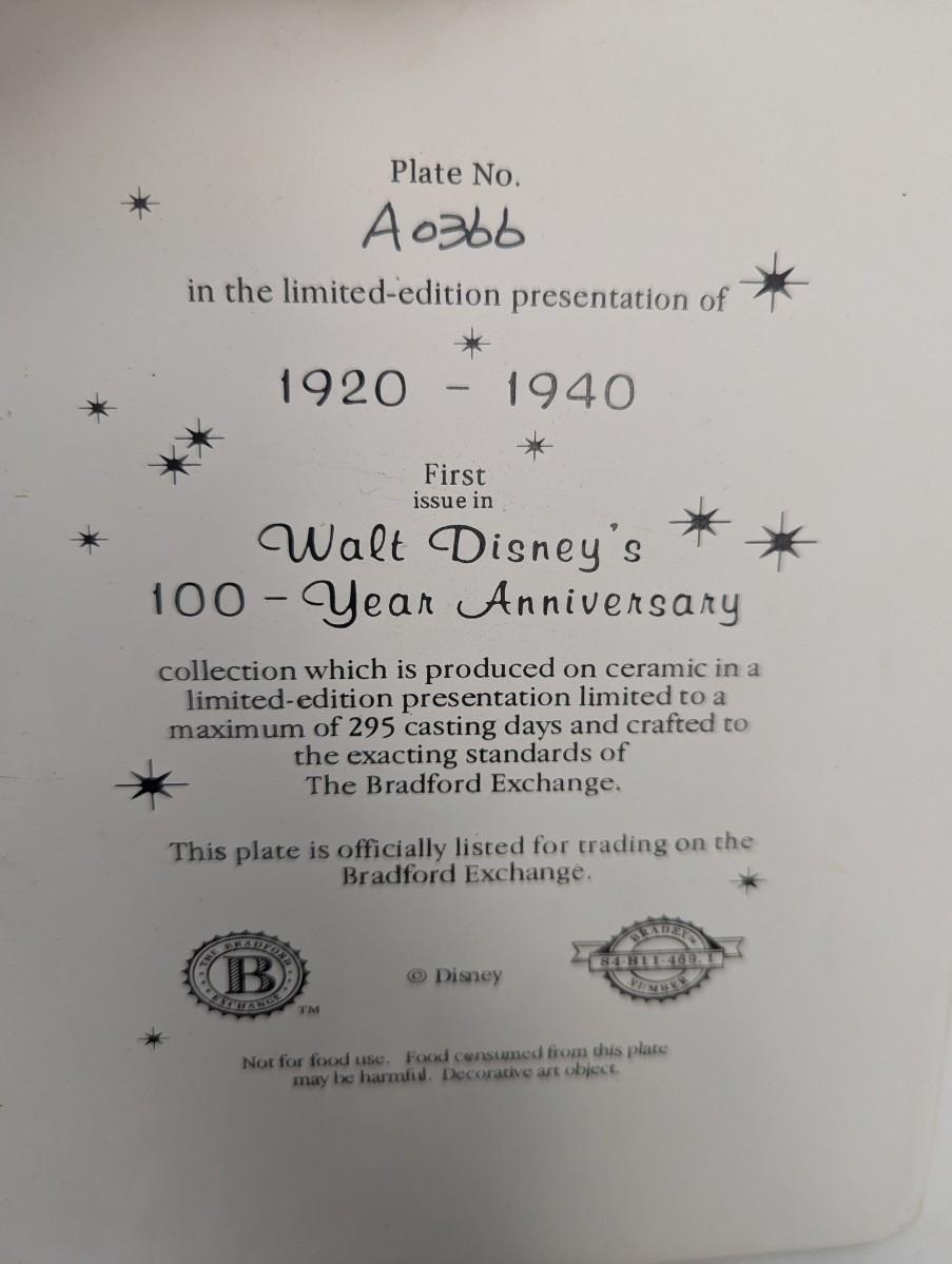 Walt Disney Bradford Exchange Limited Edition 100 Year Anniversary Plates
