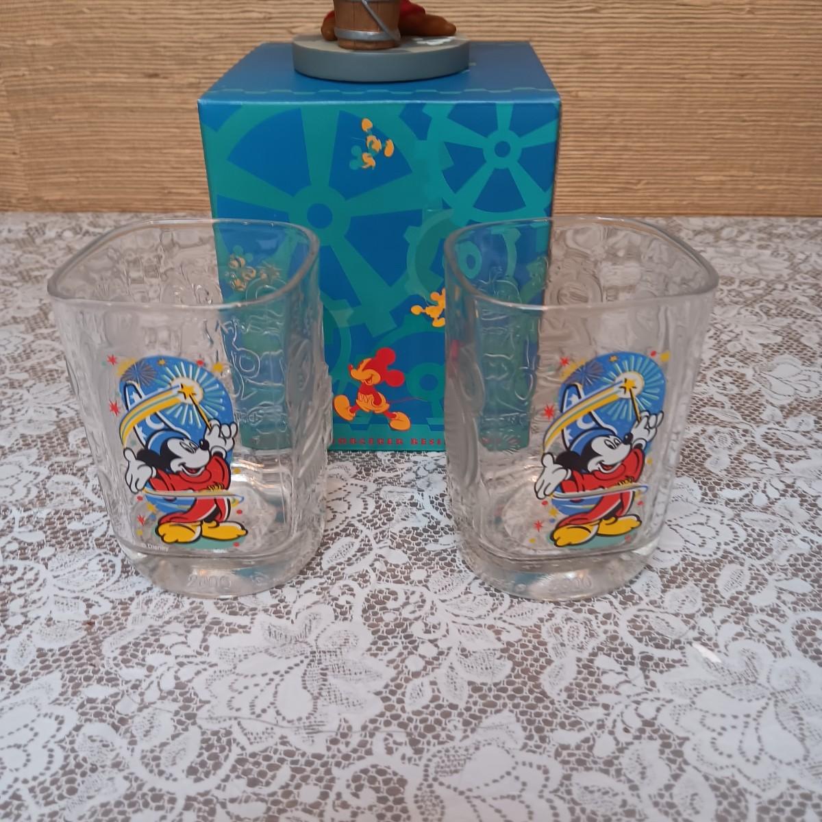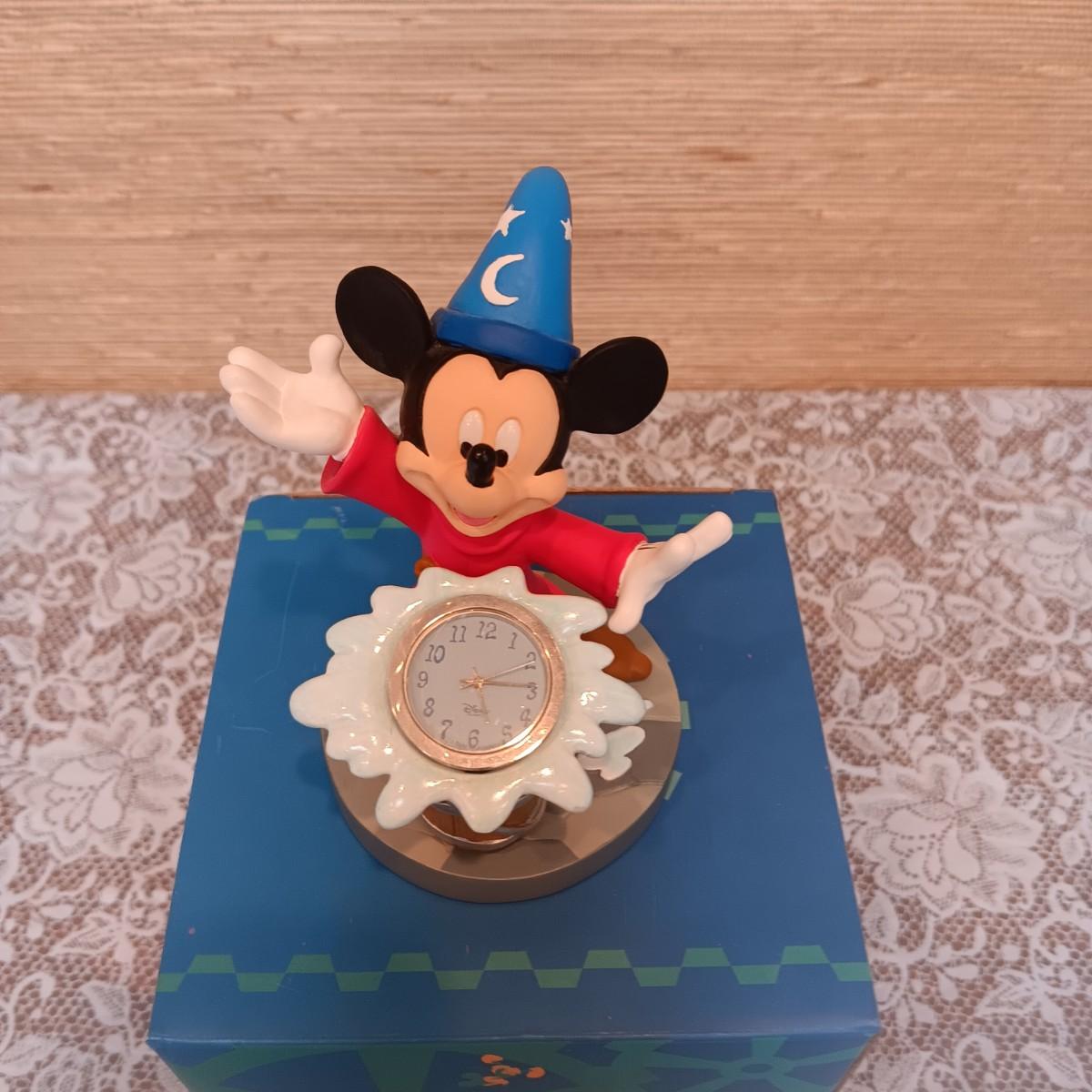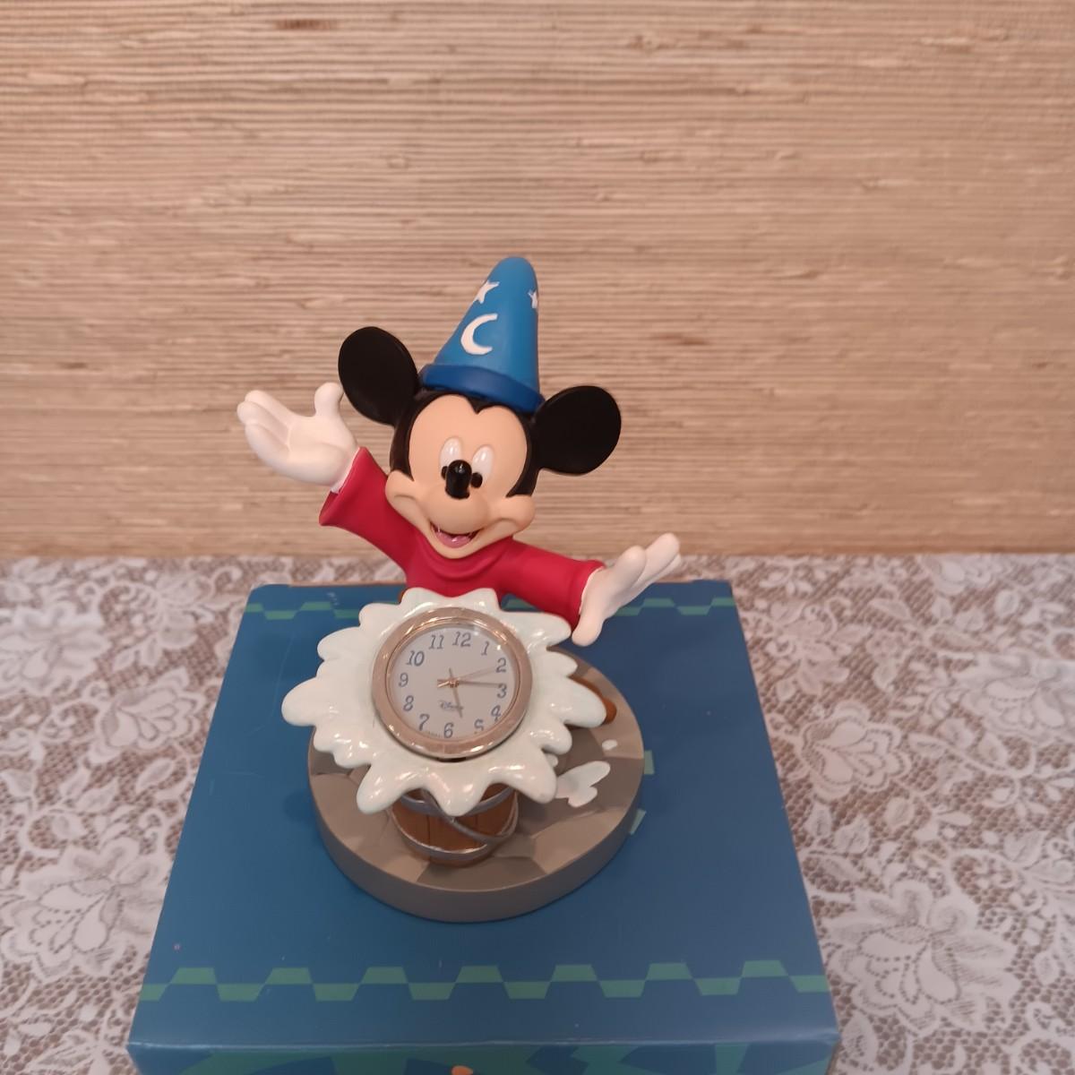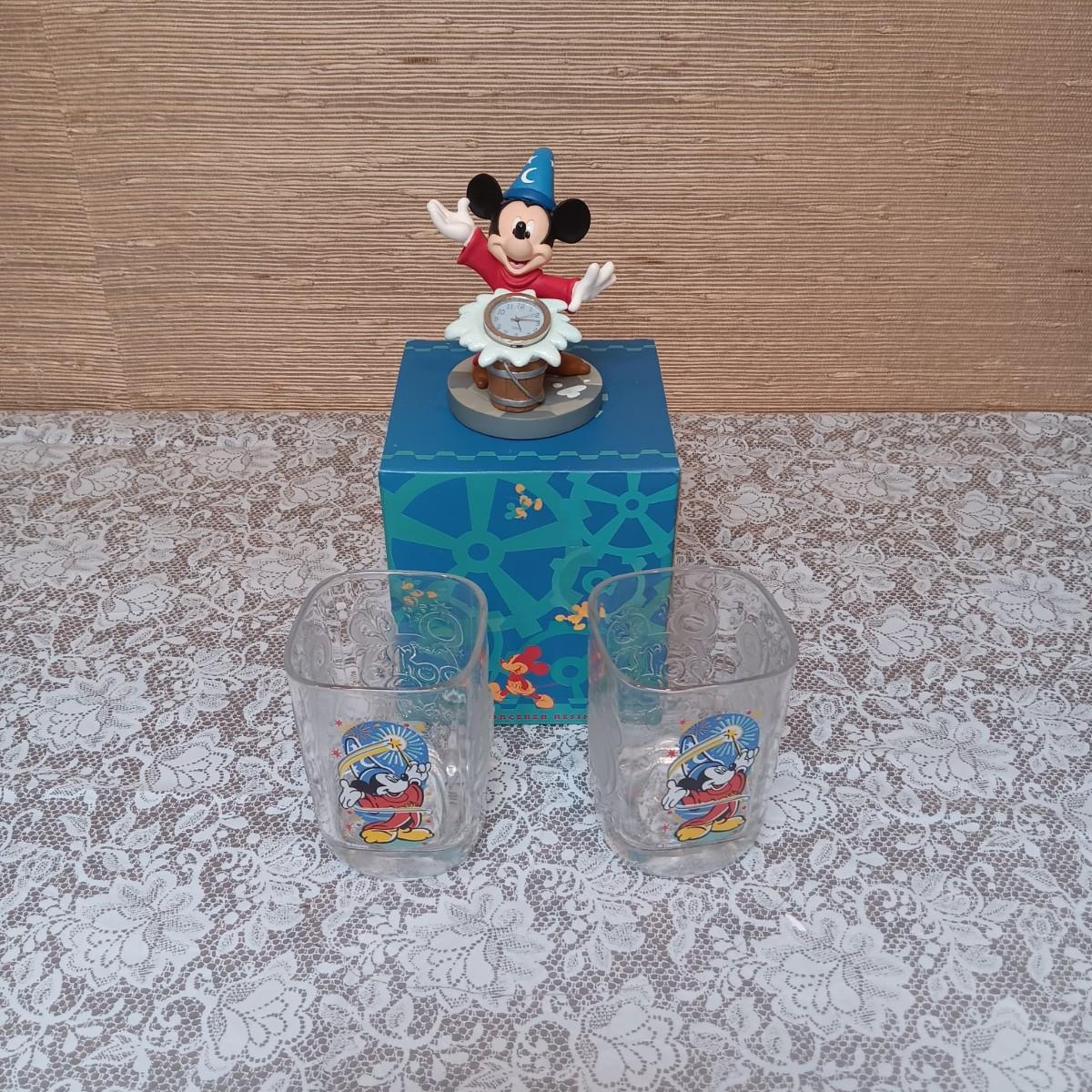 WALT DISNEY MICKEY SORCERER RESIN CLOCK AND 2 GLASSES