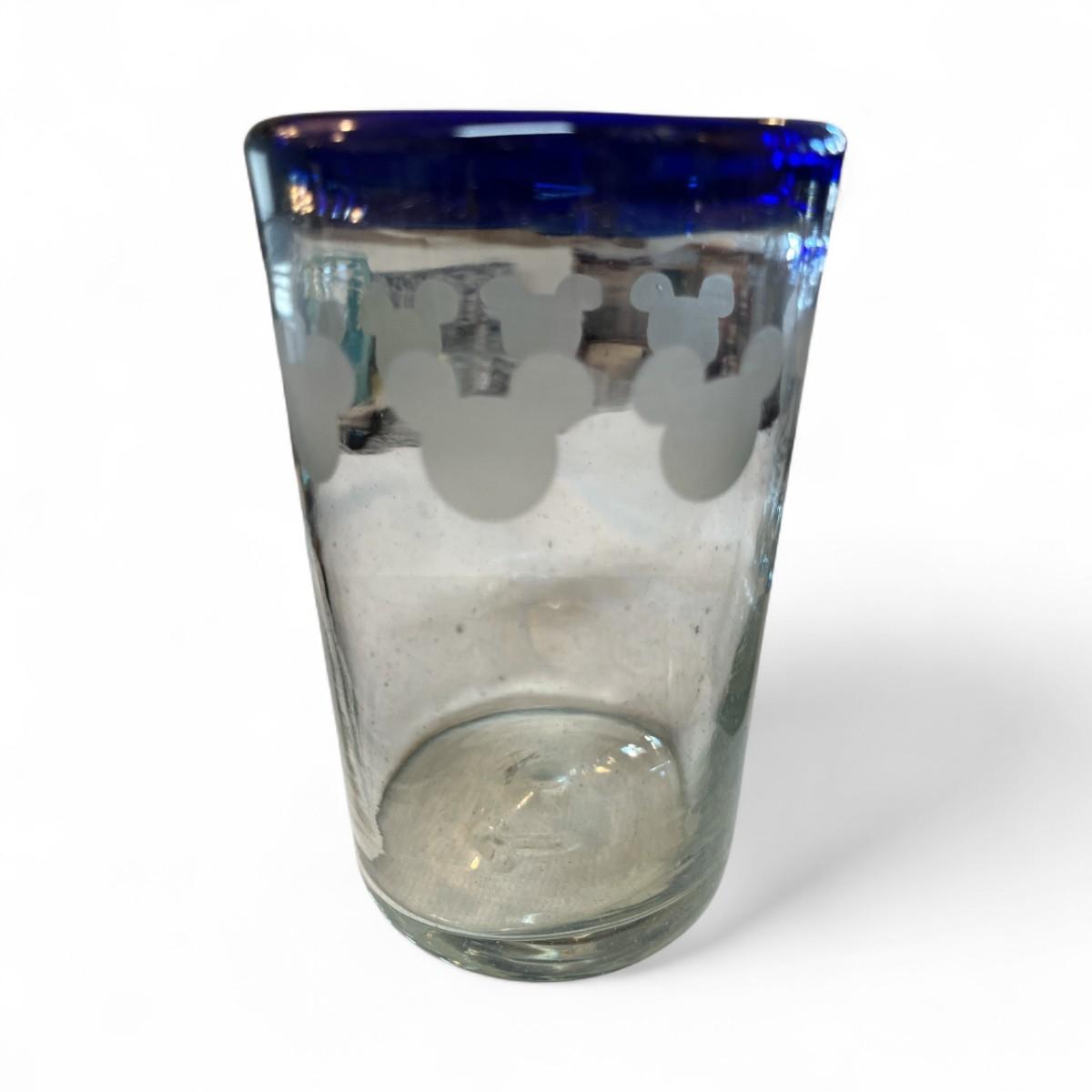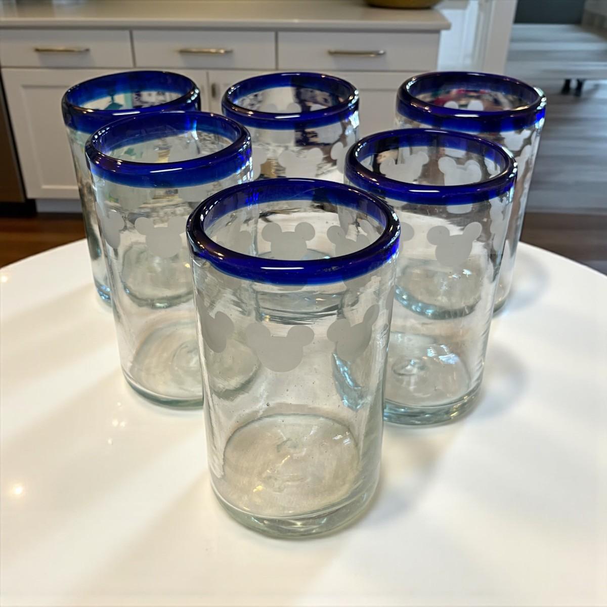 Walt Disney Mikey Mouse Cobalt Blue Rimmed Drinking Glasses. Hand Blown. Set of 6 Glasses