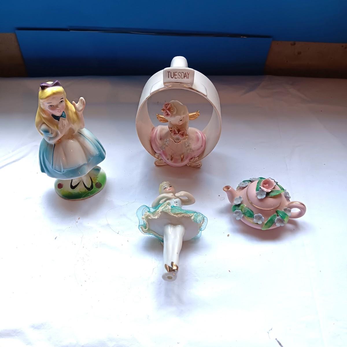 WALT DISNEY PRODUCTIONS ALICE IN WONDERLAND AND 3 OTHER VINTAGE FIGURINES