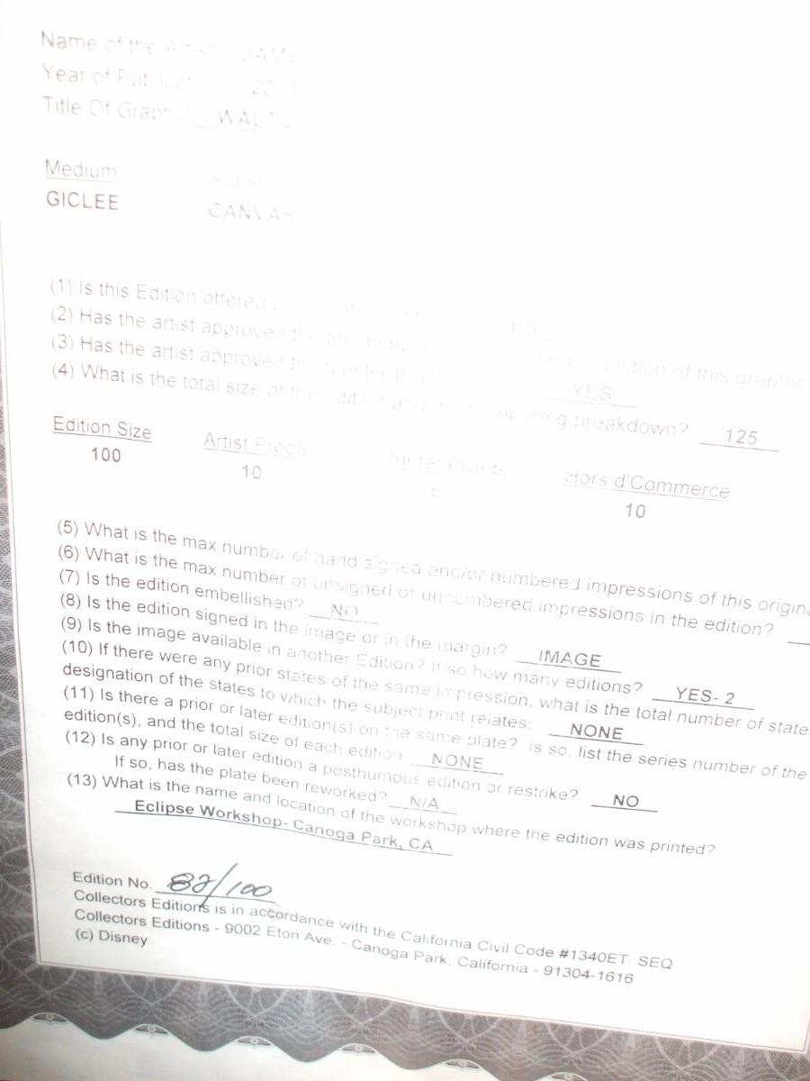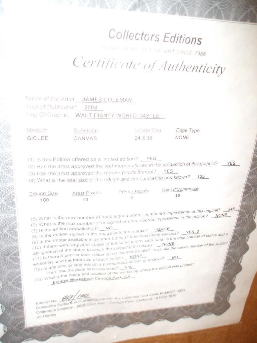 By James Coleman in 2004, Only 345 were painted. Done on Canvas 24x36. COA enclosed