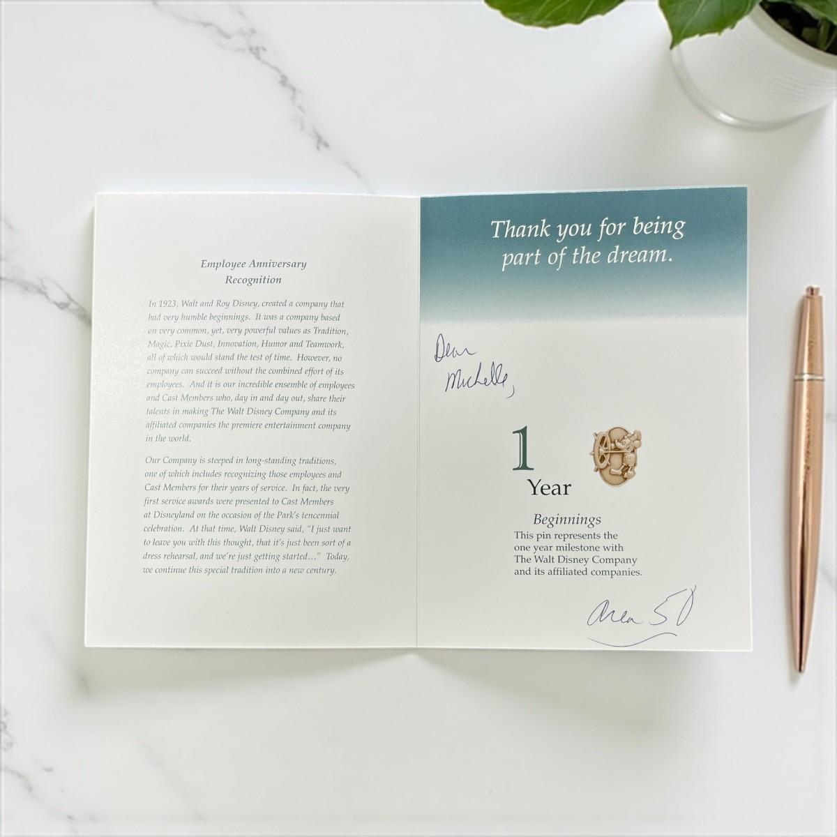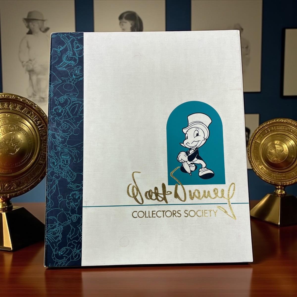 Walt Disney World Collectors Society Box including, The Magic Begins With Me Book, On With The Show Photo, Cast Holiday Celebration Framed Photo, I Year Anniversary Card, Two Disney Dollars, One December 31, 1999 Entrance Ticket, Disney Cash Handling Manual, Disney Vista Bank Flyers, Disney Pin Trading Flyer, 2 Cards, Disney Store Shopping Bags