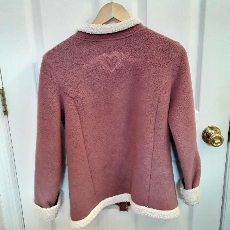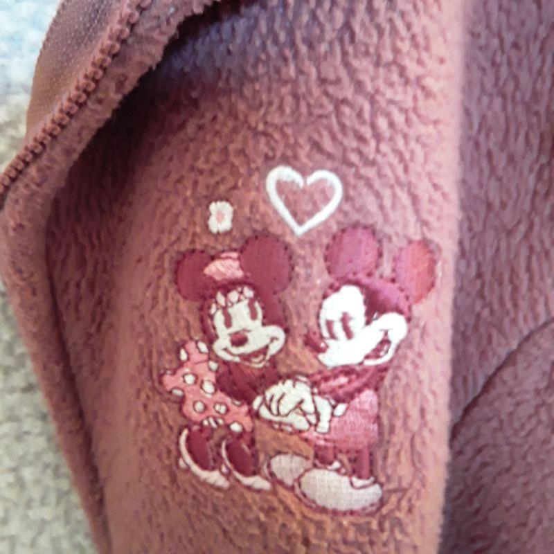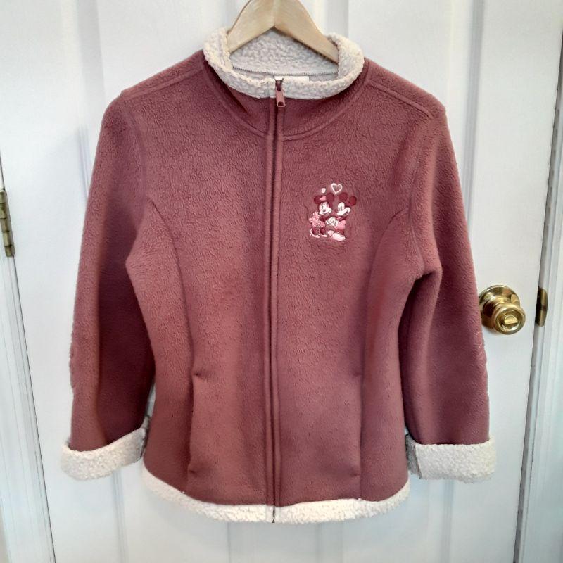 Walt Disney World Fleece Pink Jacket with Mickey and Minnie Embroidered on the front and heart embroidered on the back. White fleece lining and trim. Size Small