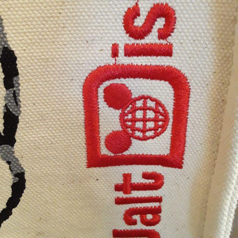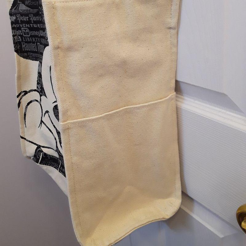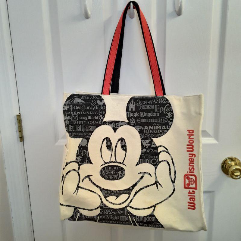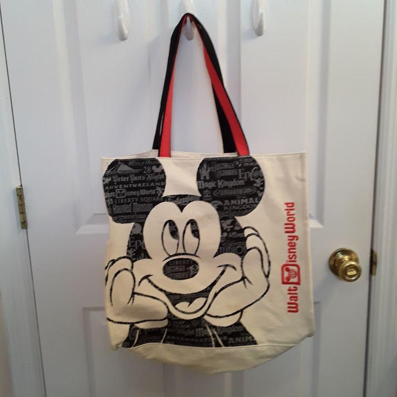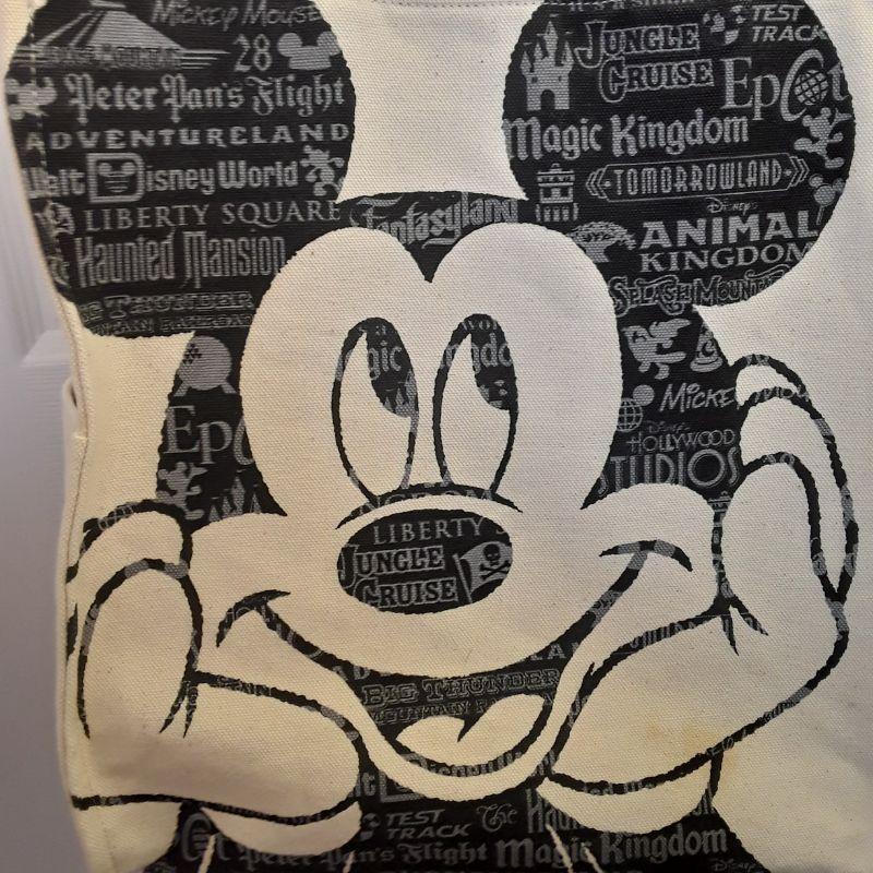 Large tote with Mickey and all the parks listed on his picture, Embroidered Walt Disney World, Nice heavy straps, very well made and clean tote.
