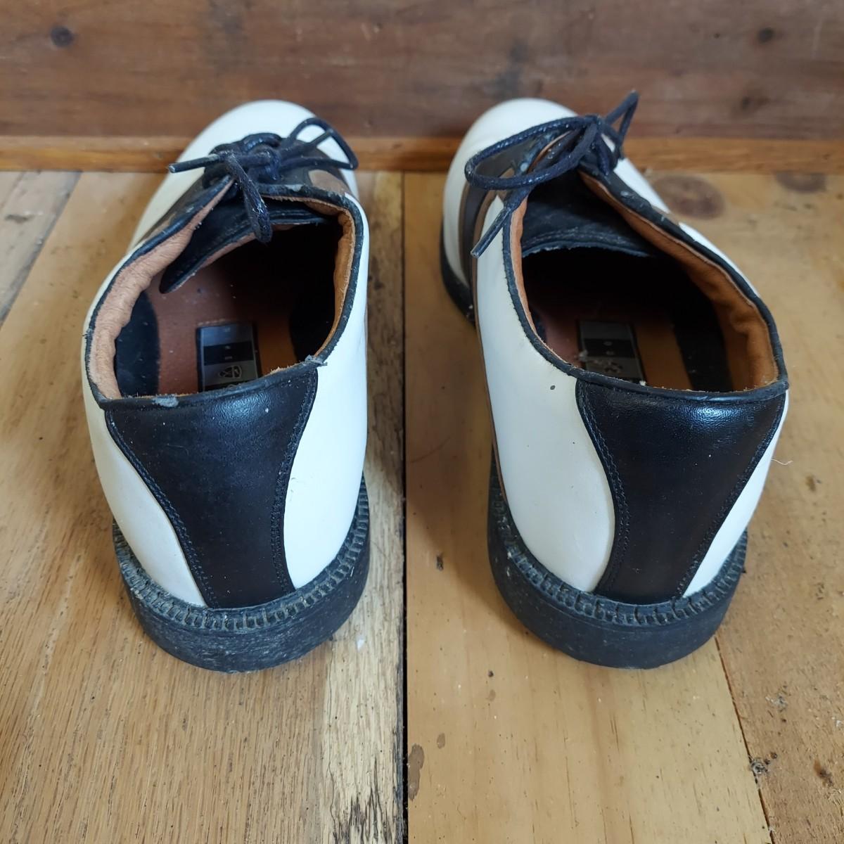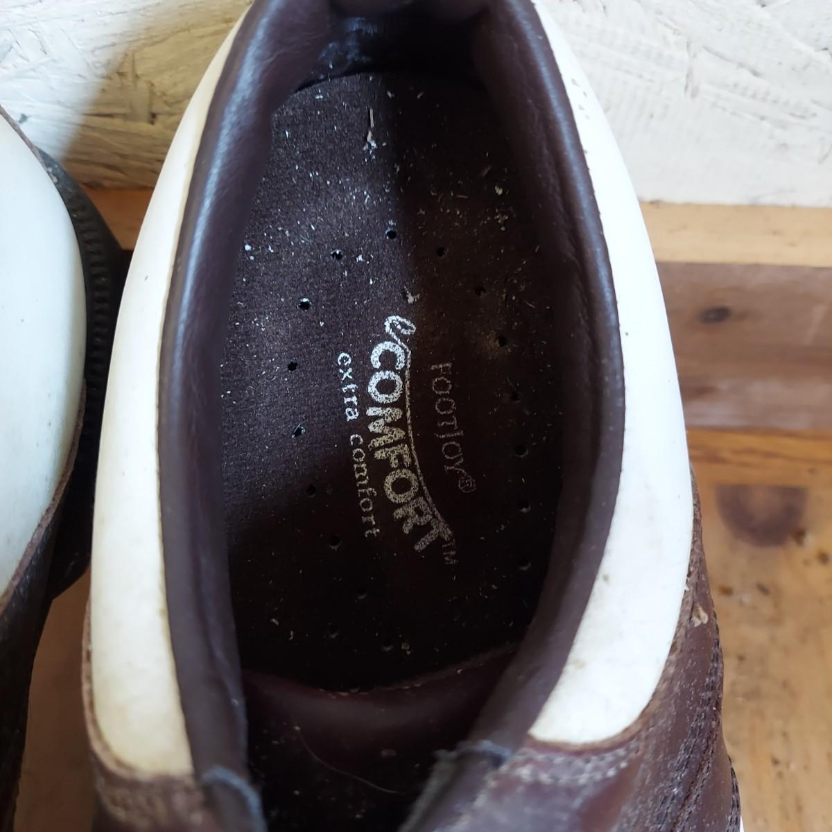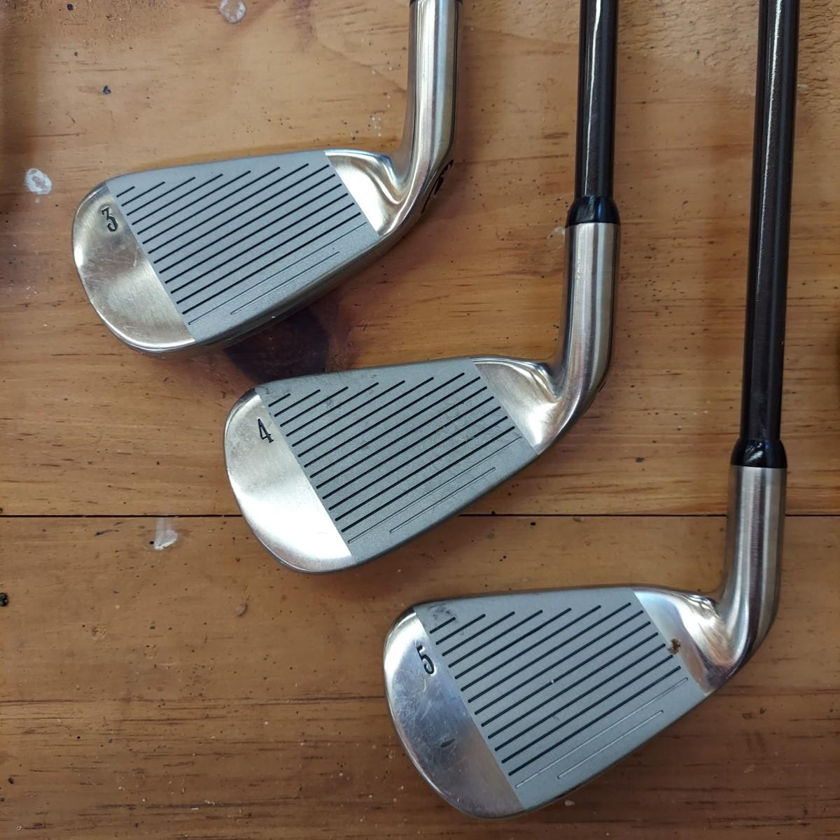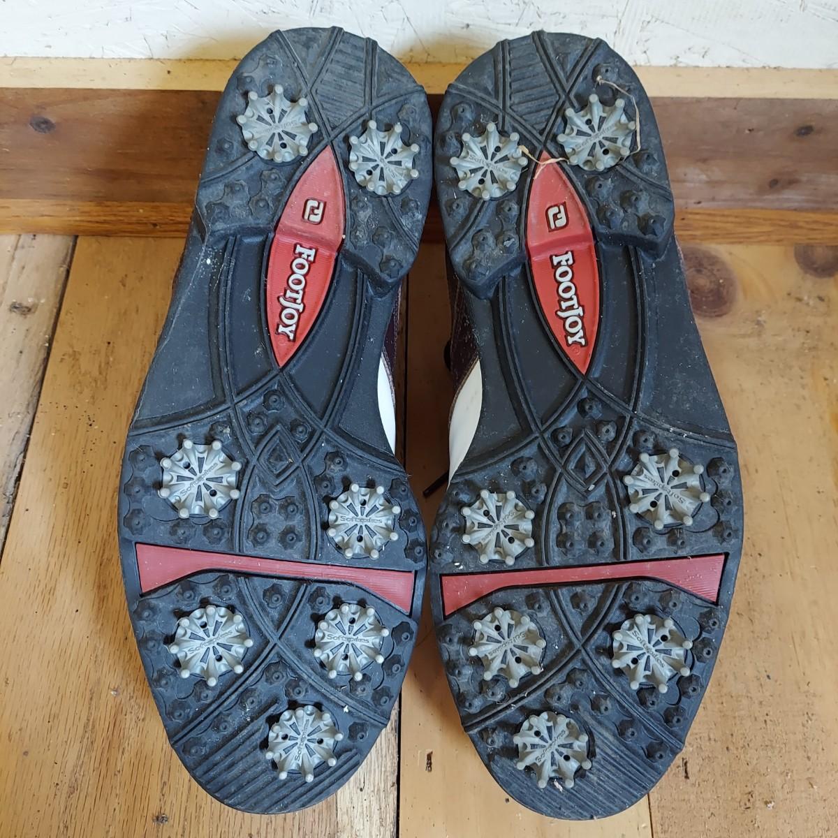 Walter Hagen golf bag with many Balistik clubs. There are four woods and nine iron. The sand wedge is shortest with a shaft length of 33" long. The eight wood is the longest with a shaft length of 41". There are also two pair of gold shoes included. A pair of Nike Golf shoes size nine. And a pair of Foot Joys in size 9w. Local Pickup Only.