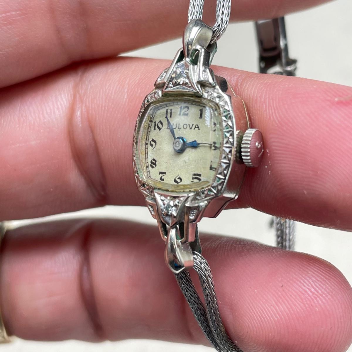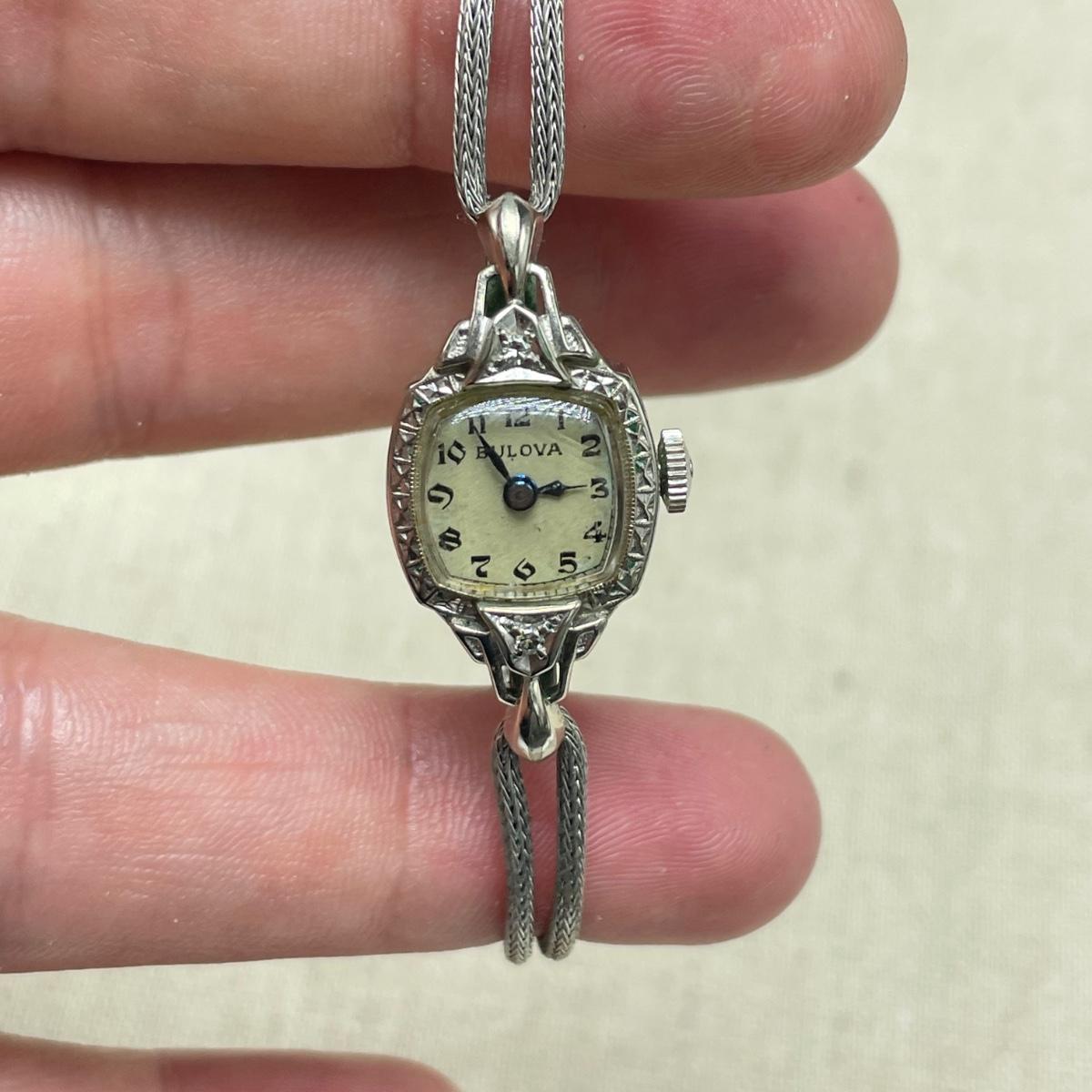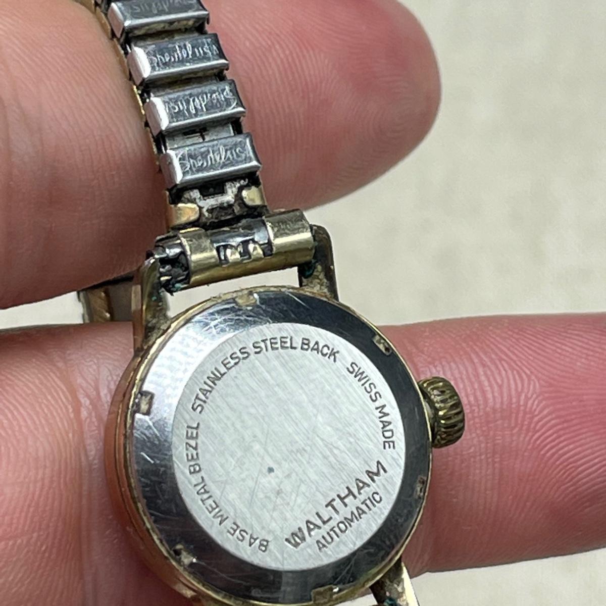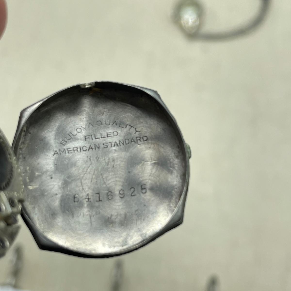 Three vintage watches. Two are Bulova and one with a metal elastic band is Waltham. All three have not been tested and probably need new batteries. The two Bulova watches are clasped and will currently fit a petite wrist. These two also need repairs to the clasps, they do not currently close completely. See images. Shipping available.