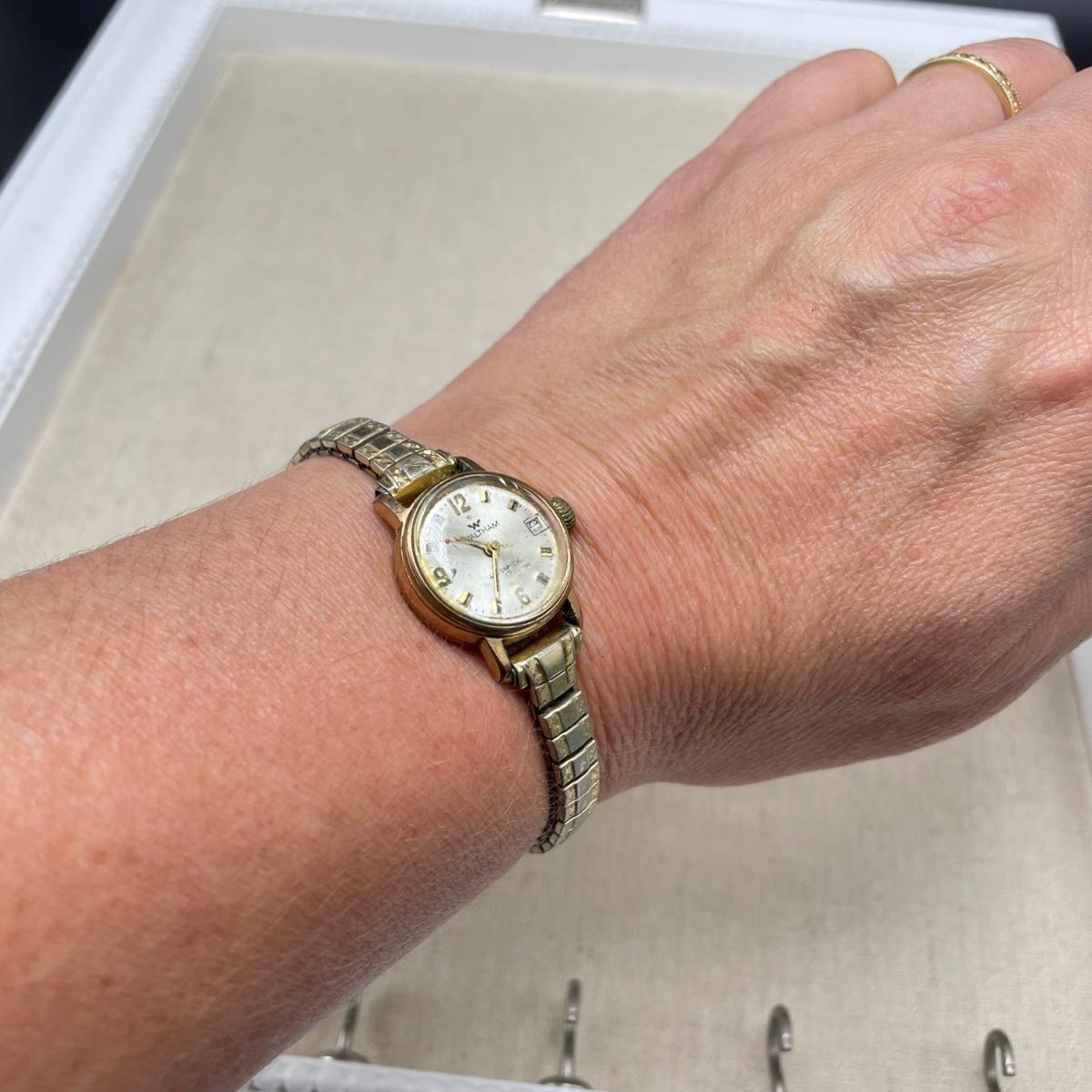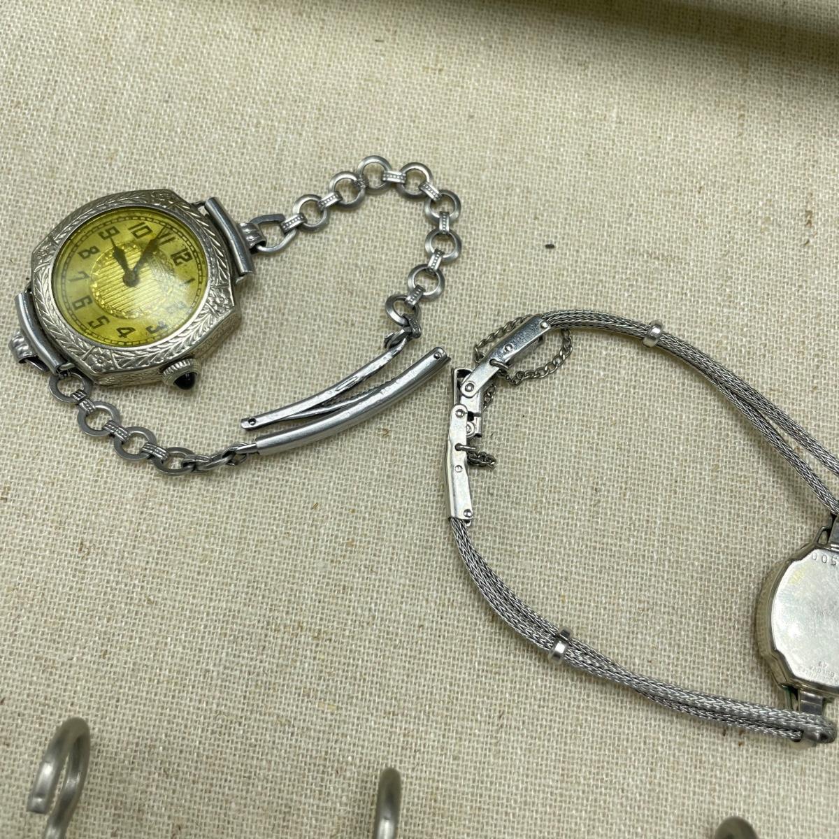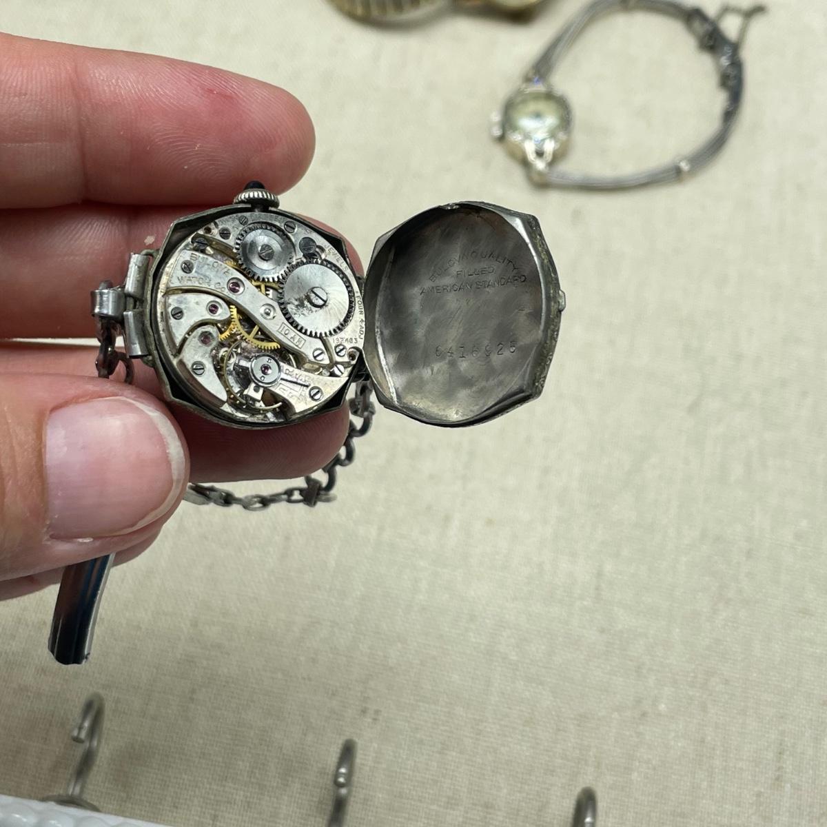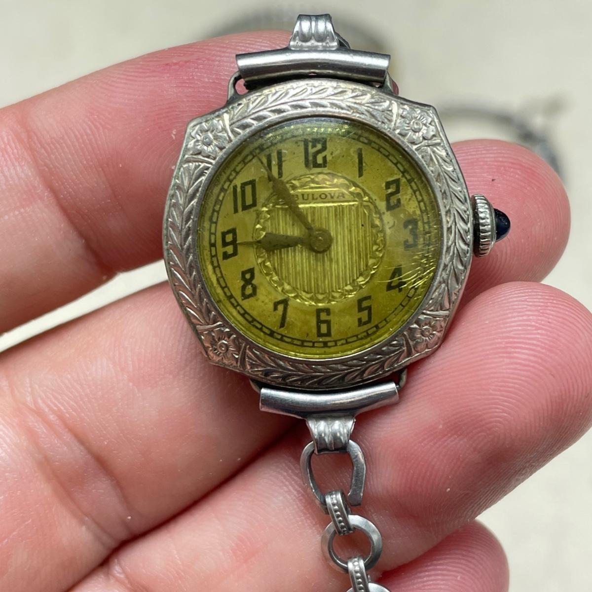 Three vintage watches. Two are Bulova and one with a metal elastic band is Waltham. All three have not been tested and probably need new batteries. The two Bulova watches are clasped and will currently fit a petite wrist. These two also need repairs to the clasps, they do not currently close completely. See images. Shipping available.