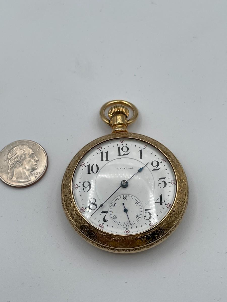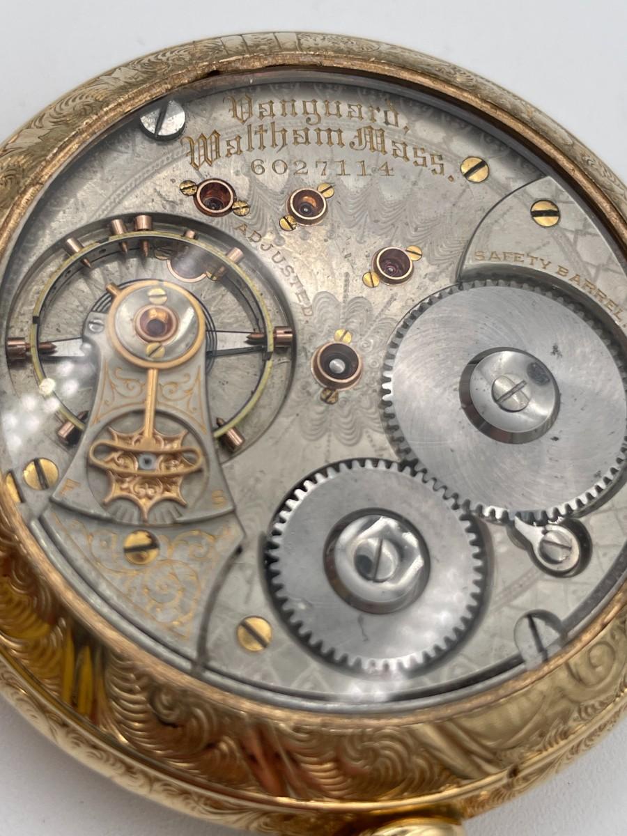Waltham Vanguard Pocket Watch, No. (6027114), Size 18s, Prod. Yr. 1894. Case: No. 269276, GF. Condition - Winder & watch are in working order. This is not a guarantee that all parts are original nor is the watch autheniticated.