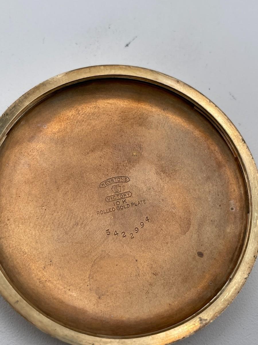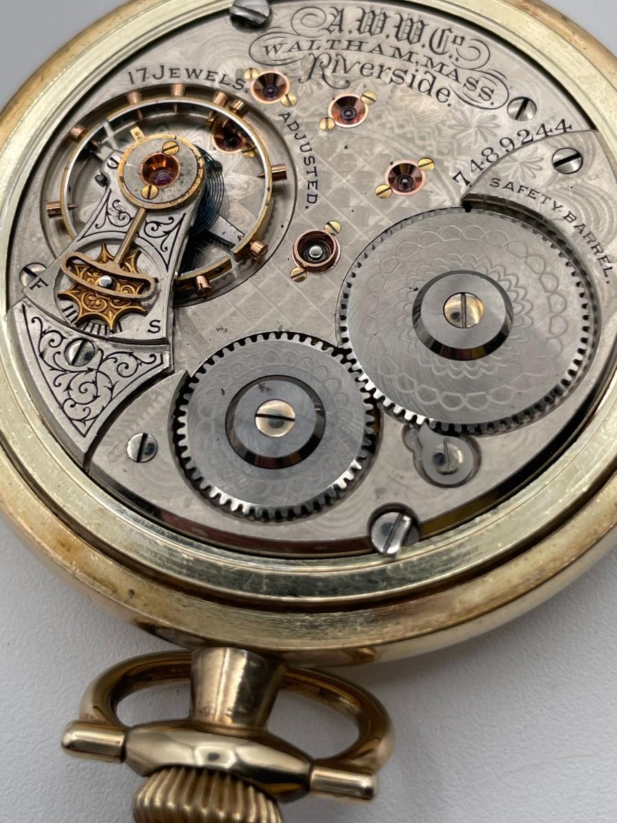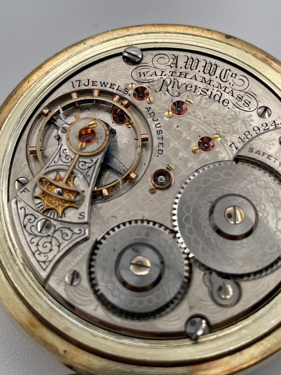 A.W.W.Co. Waltham Pocket Watch, No. (7489244), Size 18s, Prod Yr 1900, 17 Jewels. Case: Keystone Victory No. 5422994, 10K Rollled Gold Plate. Condition - Winder & watch are in working order. This is not a guarantee that all parts are original nor is the watch autheniticated.