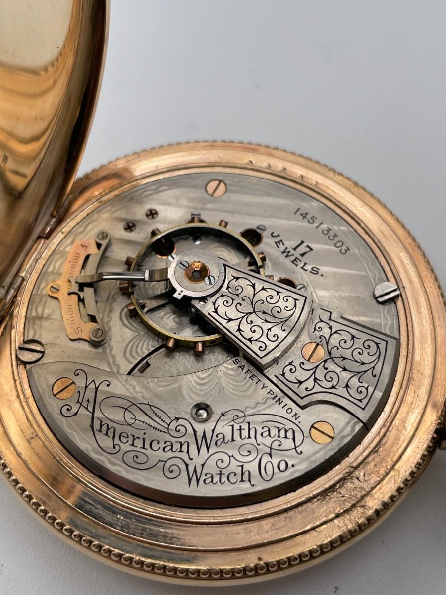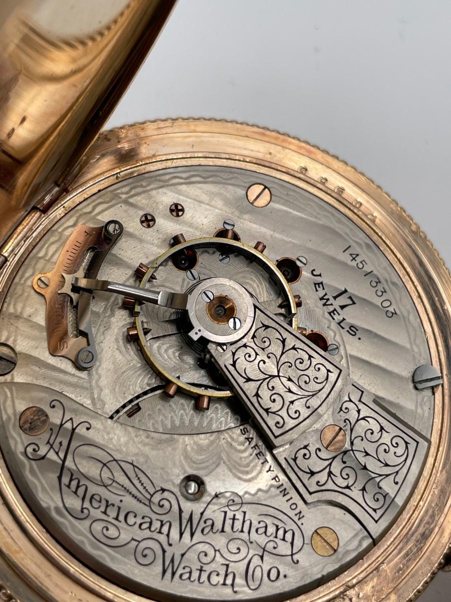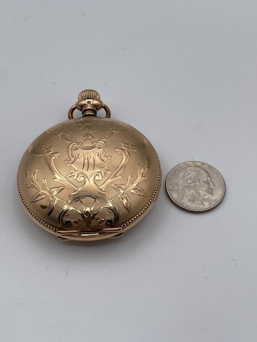 Waltham Pocket Watch, No. (14513303, Size 18s, Prod Yr 1905, 17 Jewels. Case: Keystone No. 7196594, Jboss 14k 25 yrs. Condition - Winder & watch are in working order. This is not a guarantee that all parts are original nor is the watch autheniticated.