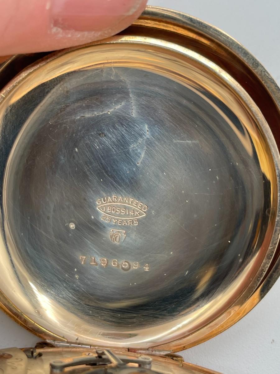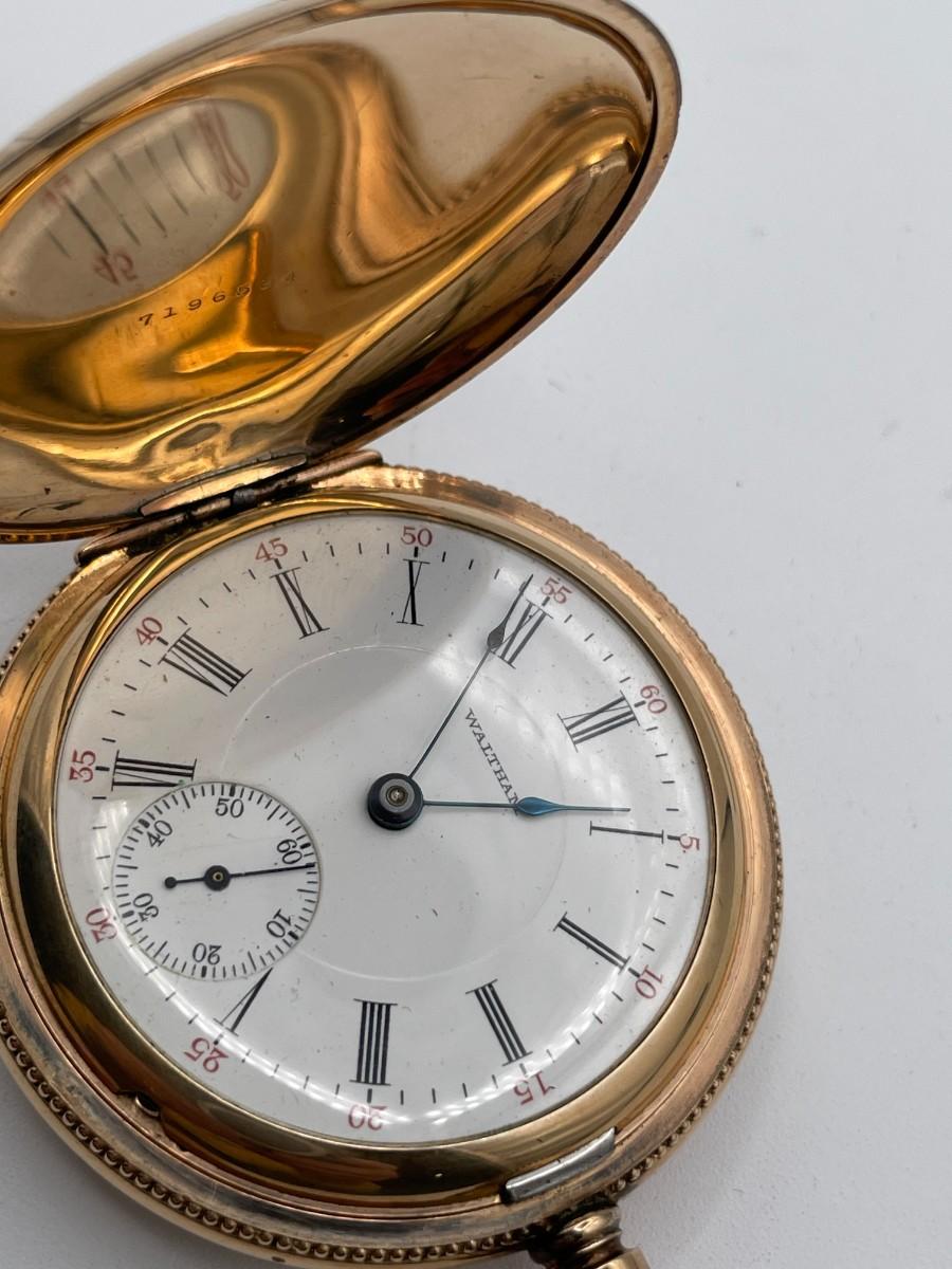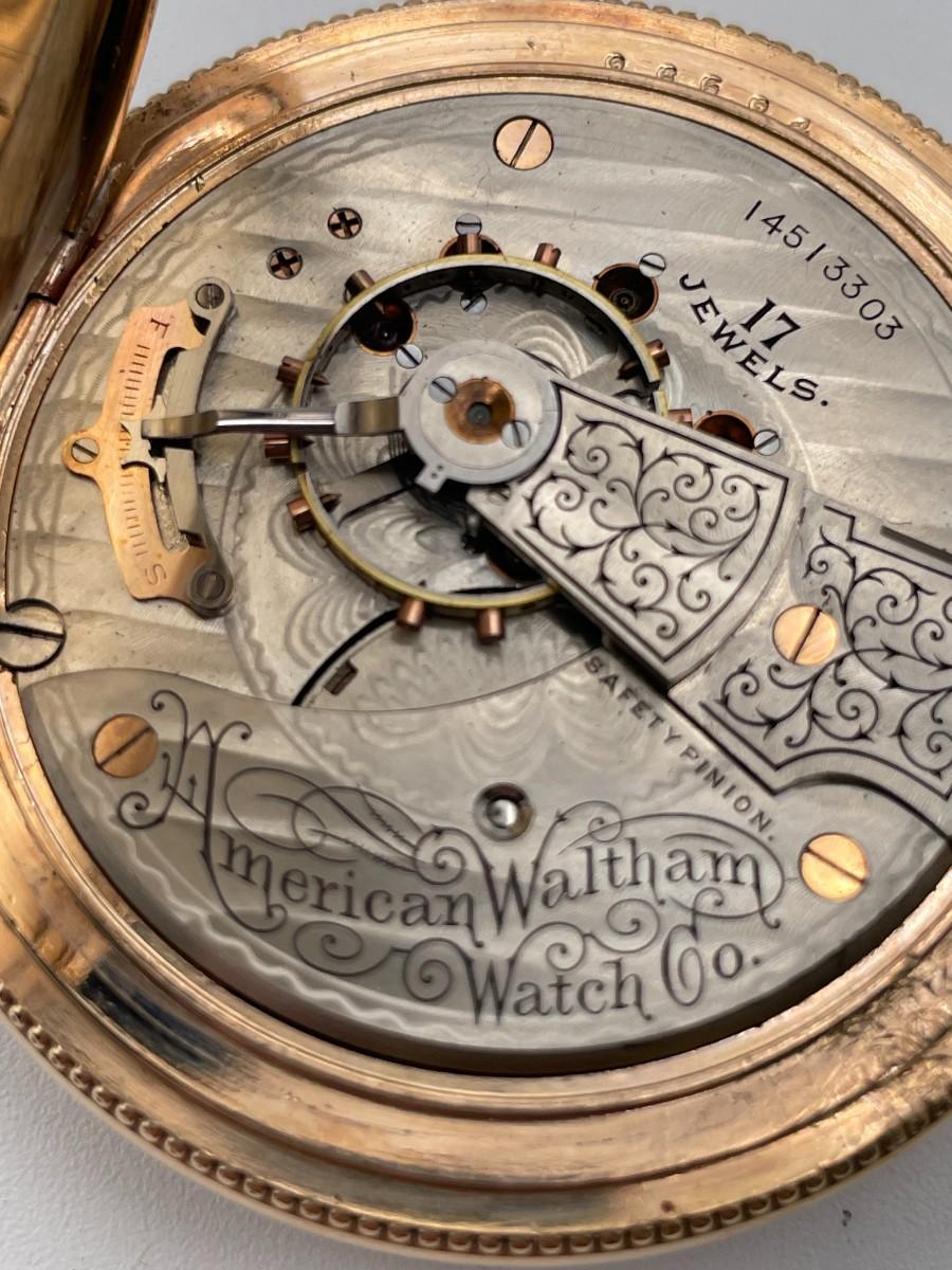 Waltham Pocket Watch, No. (14513303, Size 18s, Prod Yr 1905, 17 Jewels. Case: Keystone No. 7196594, Jboss 14k 25 yrs. Condition - Winder & watch are in working order. This is not a guarantee that all parts are original nor is the watch autheniticated.