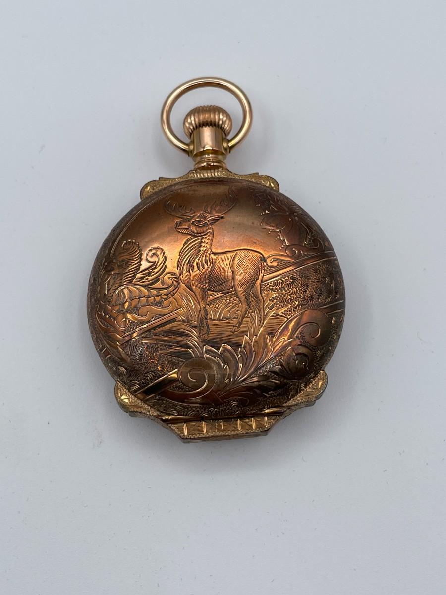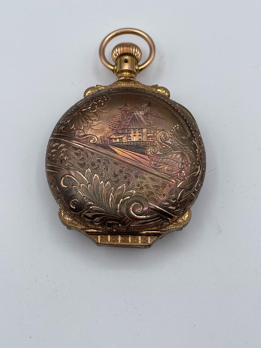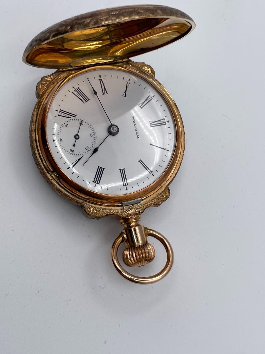 Waltham Pocketwatch - Gold Tone - Watch Number (9623331) - Size 18S - with Gold Filled case (101654). Condition - Winder & watch are in working order. This is not a guarantee that all parts are original nor is the watch autheniticated. Condition - Winder & watch are in working order. This is not a guarantee that all parts are original nor is the watch autheniticated. Estimated Value $140 - $185. Year 1823