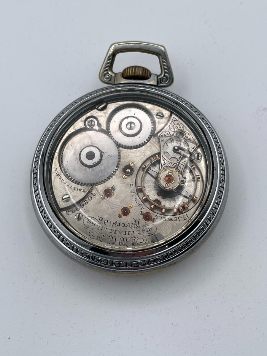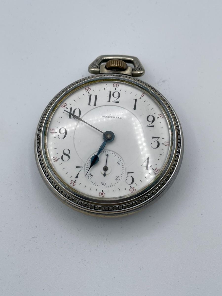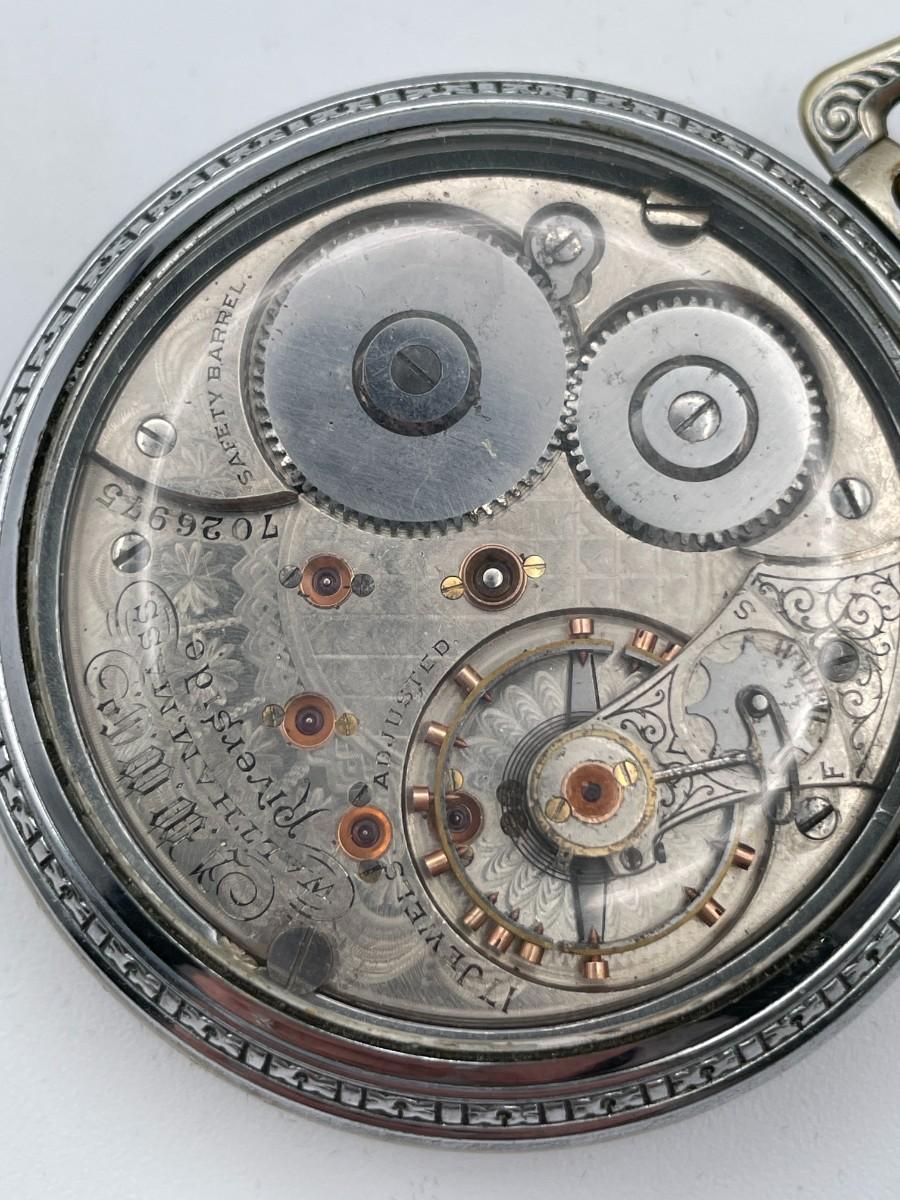 Waltham Pocketwatch - Silver Tone Number (7026975) Adjusted Size 18S, Silver Tone Case. Condition - Winder works but Watch is NOT in working order. This is not a guarantee that all parts are original nor is the watch autheniticated. Estimated Value - $135 - $175. Year 1892.