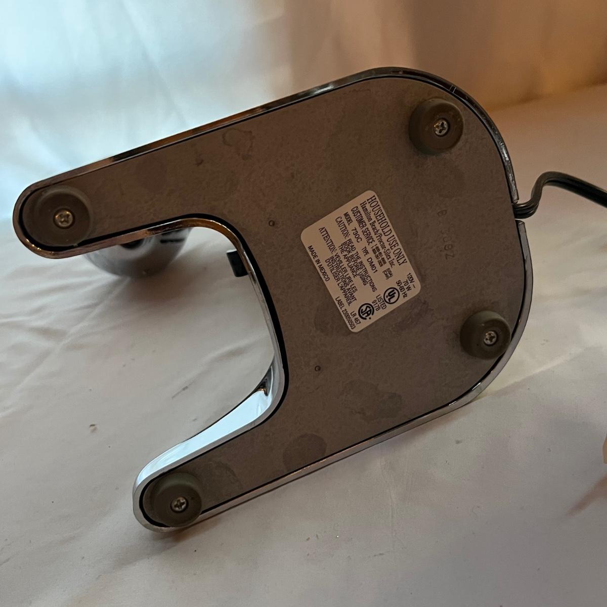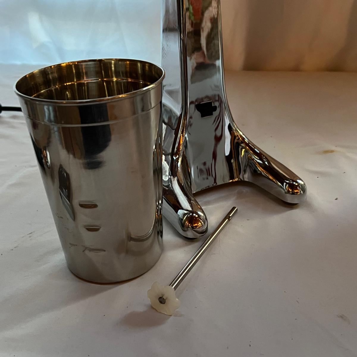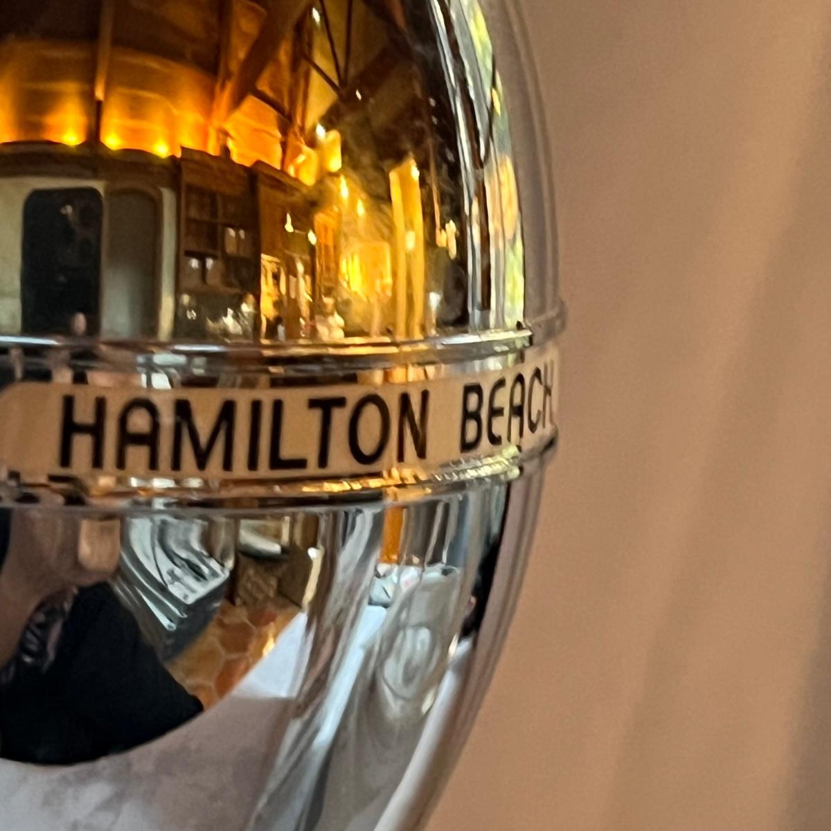 A waring “˜Kitchen Classics’ juicer is model 31JC28. Lot also includes a Hamilton Beach chrome classic drink mixer and a Metaltex potato ricer (that can work as a manual juicer). Items powered on when plugged in.