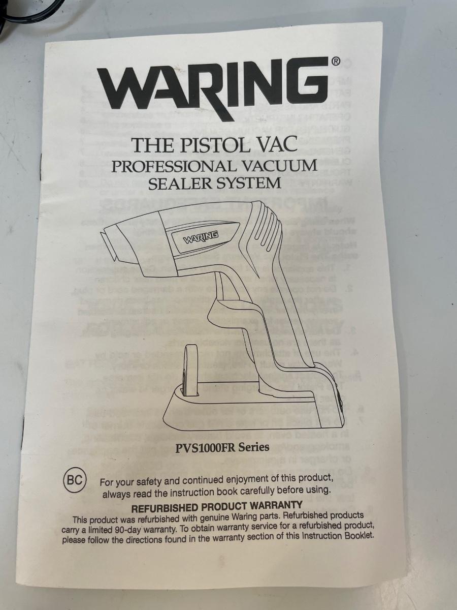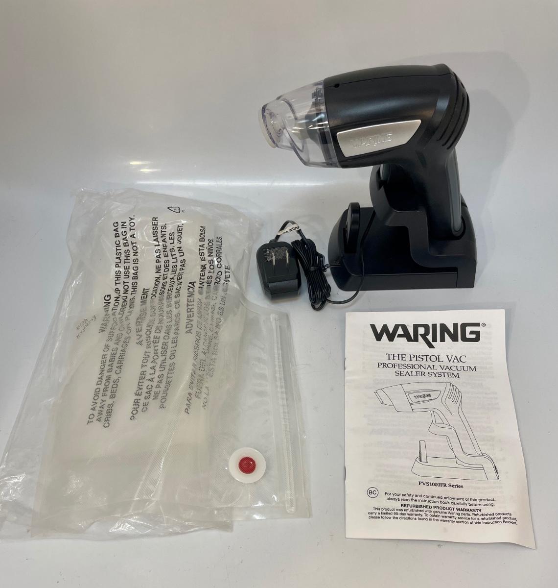 Waring Pistol Vac professional vacuum sealer system with sealer bags. Tested.