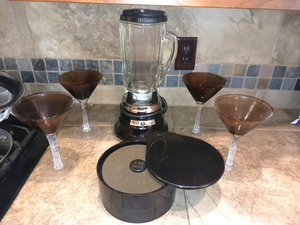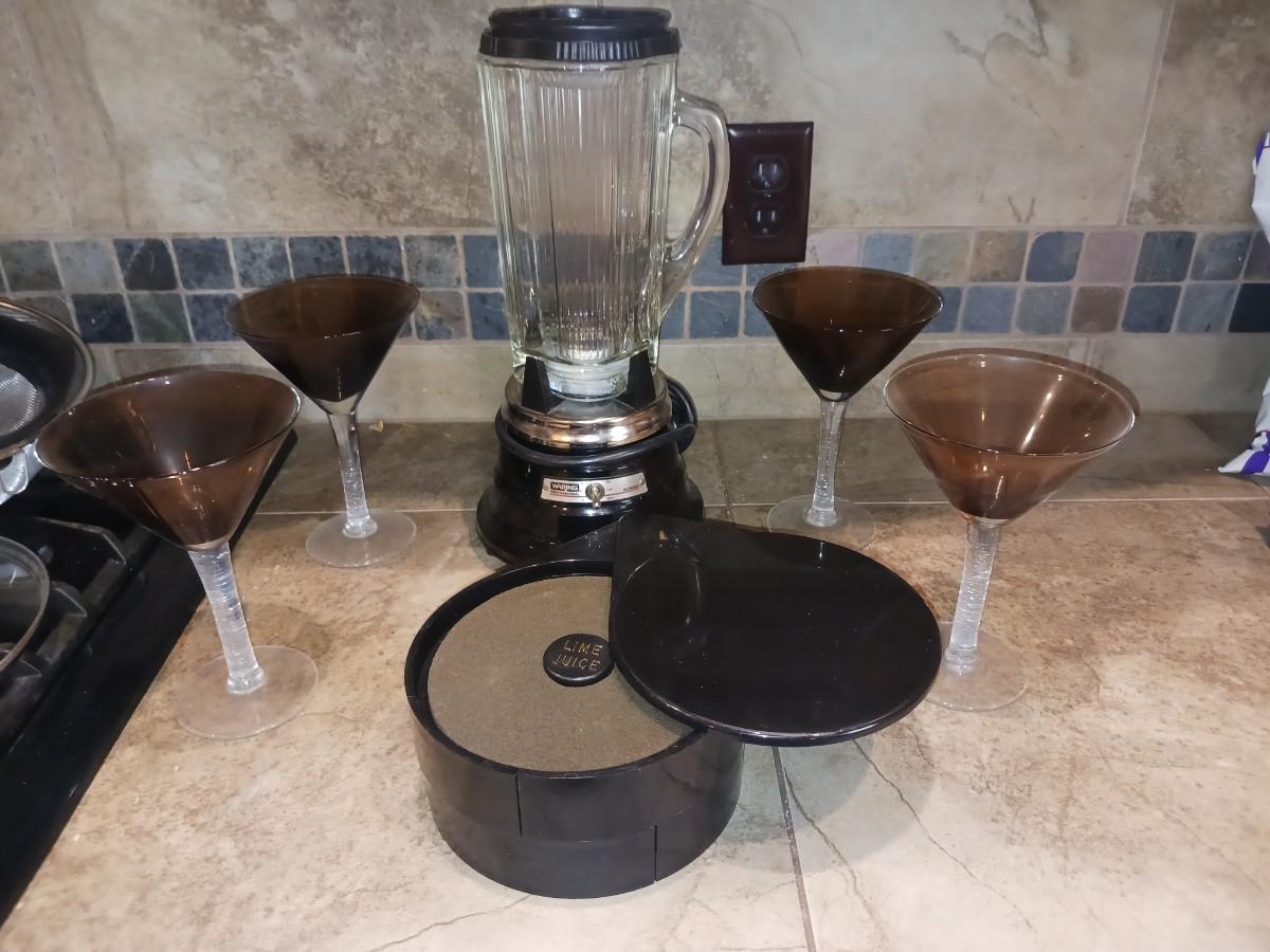WARING PROFESSIONAL BLENDER, 4 STEMMED GLASSES AND MOISTENING PAD