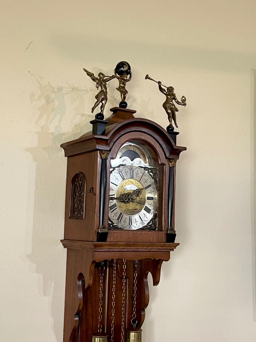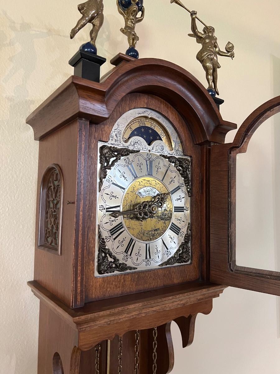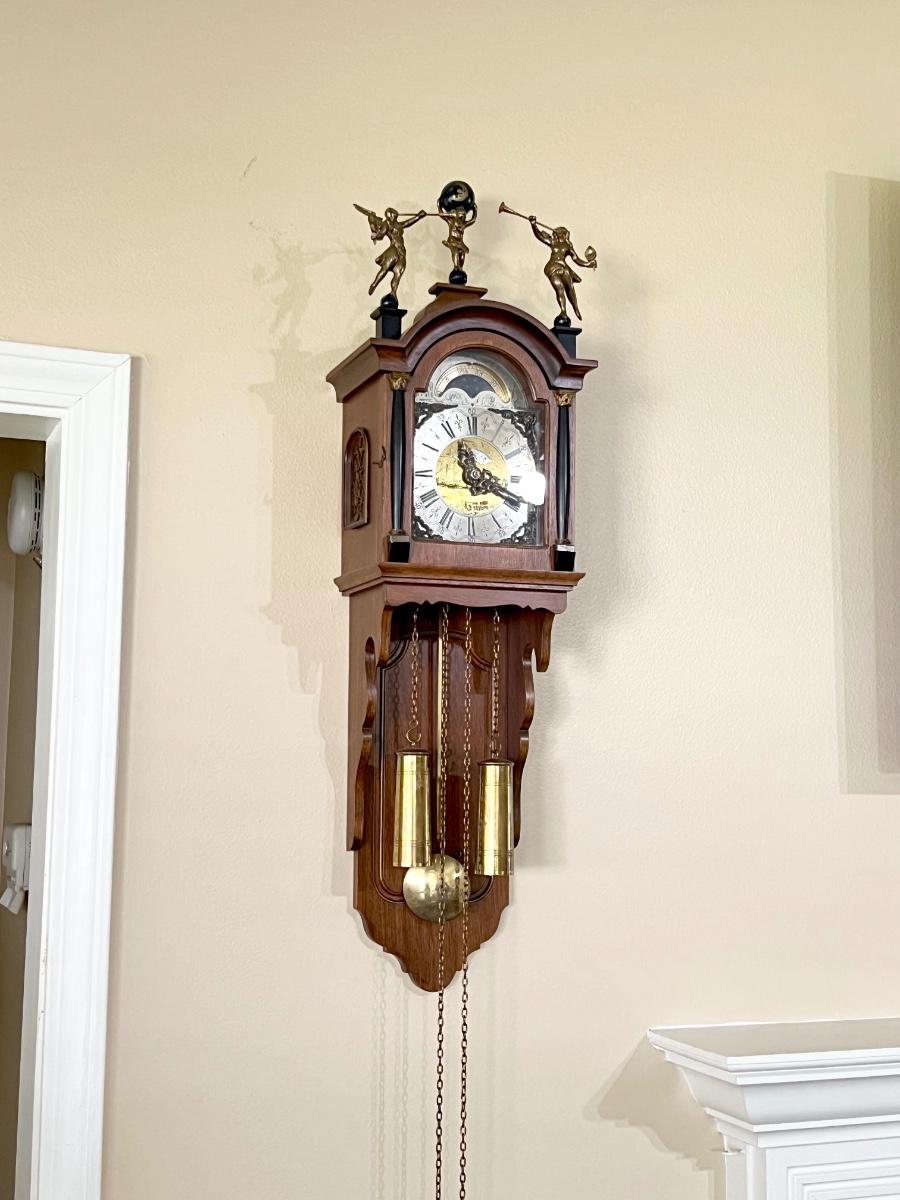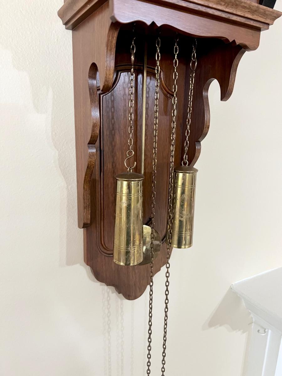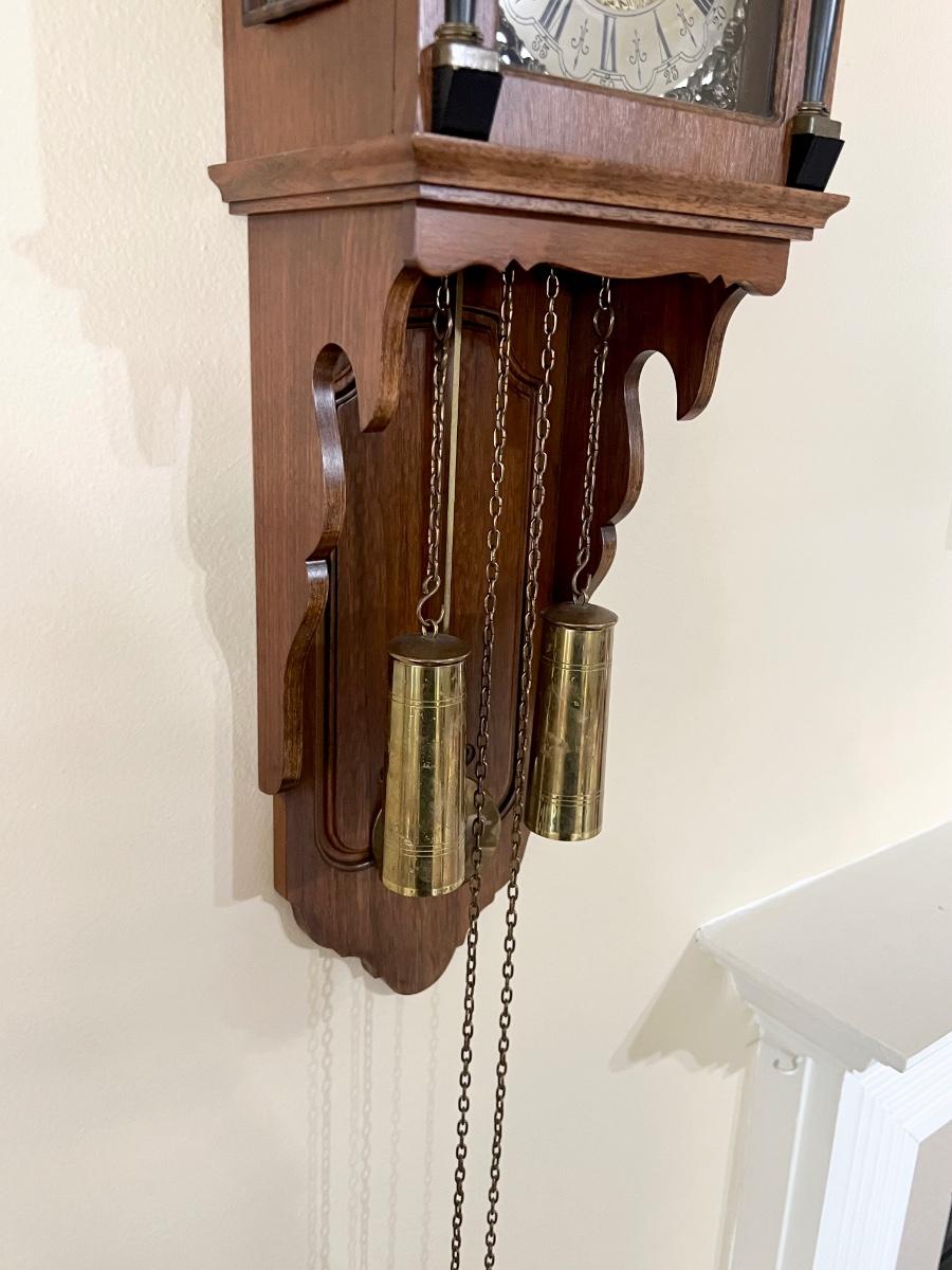 Chimes every 30 minutes ~ Clock will work once Pendulum is repaired ~ 32” H x 9” W x 6” D
